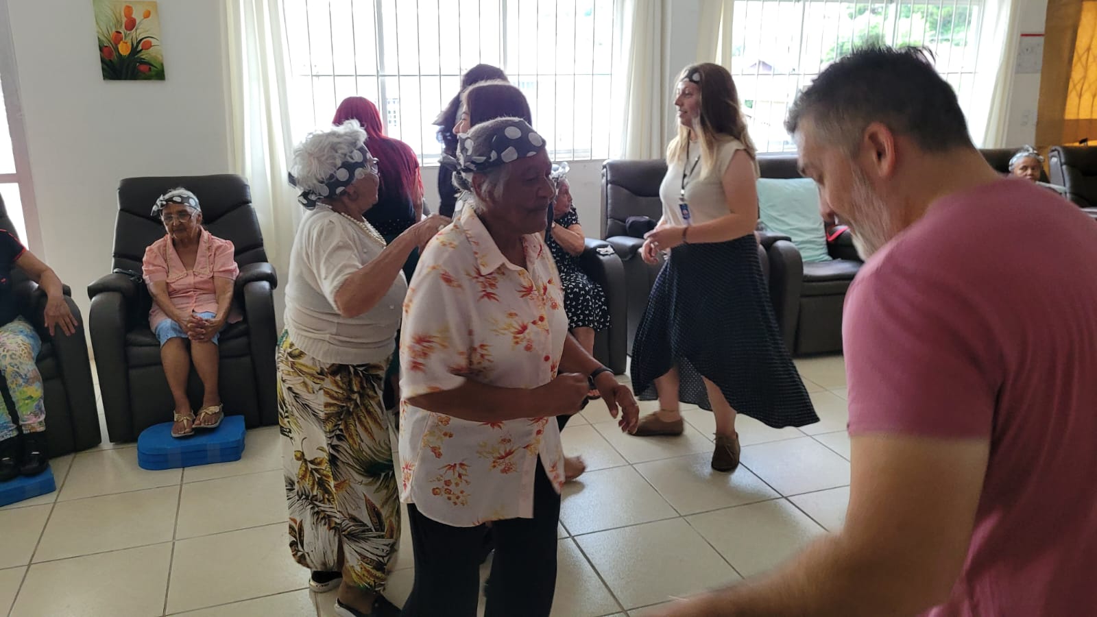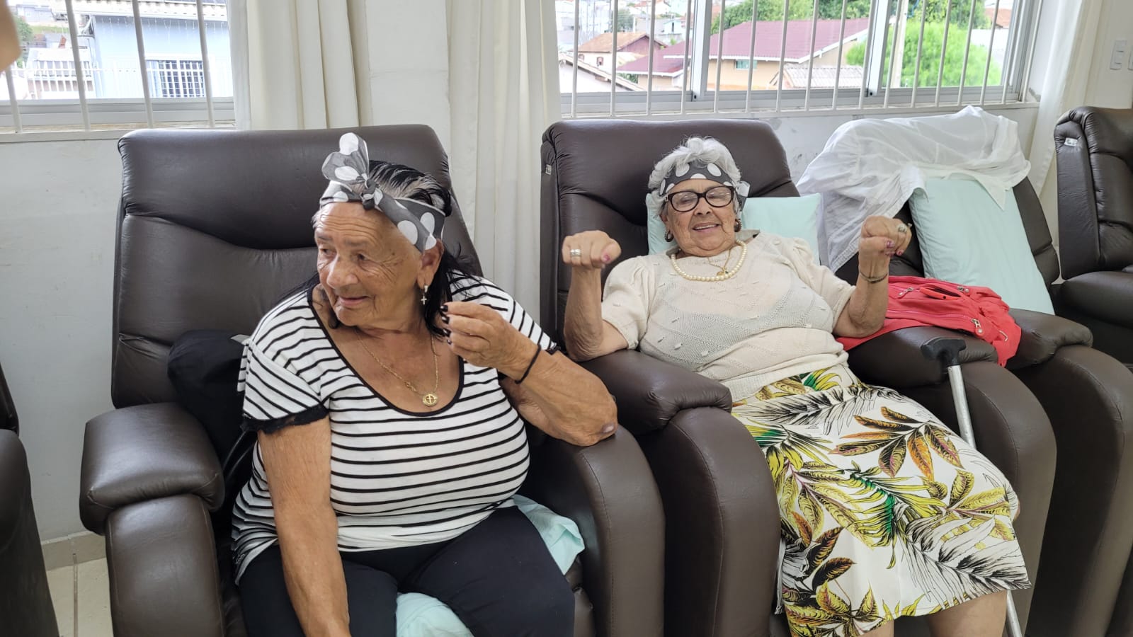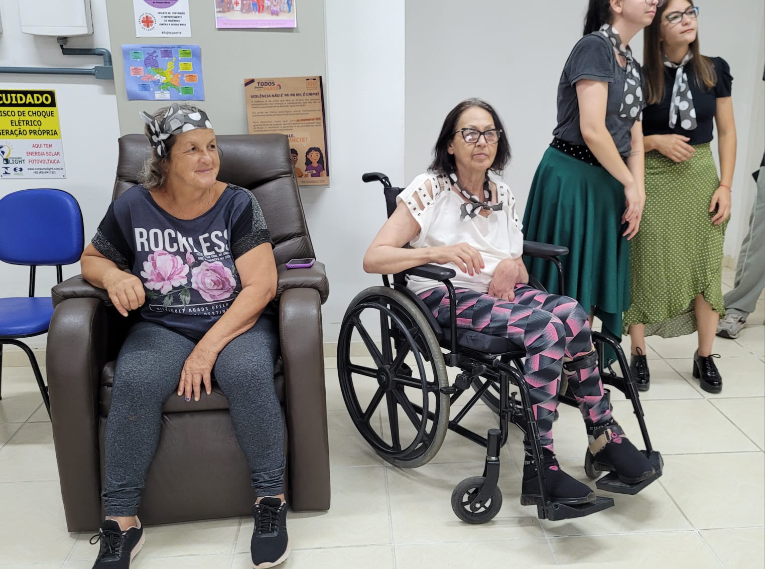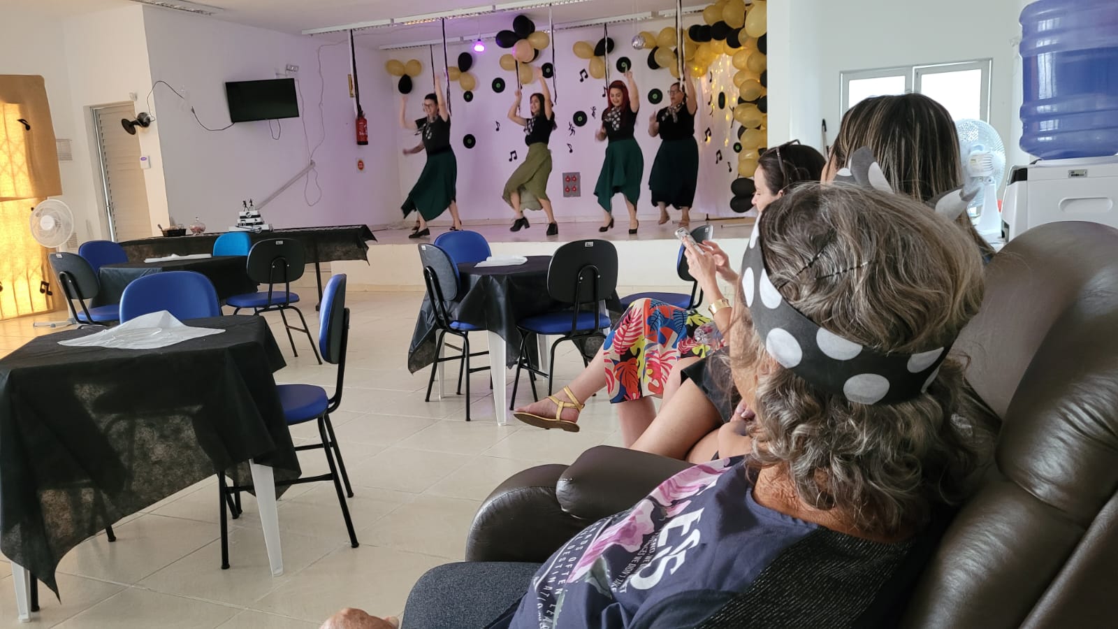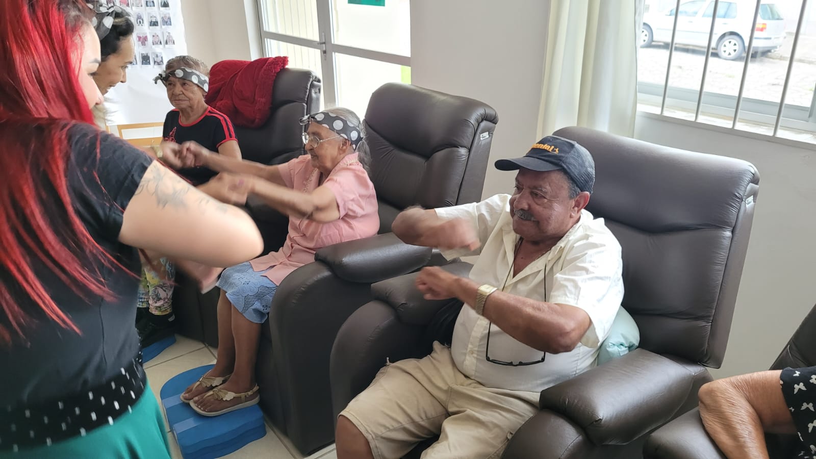 A festa teve tema “Anos 80”, com decoração alusiva, mural de fotos, balões e faixa de poá (bolinhas brancas) na cabeça para relembrar “Os Embalos de Sábado à Noite”, canções da época do vovô e da vovó, os passinhos “de antigamente” e marchinhas de Carnaval. Tudo para tornar o dia de 16 idosos inesquecível.