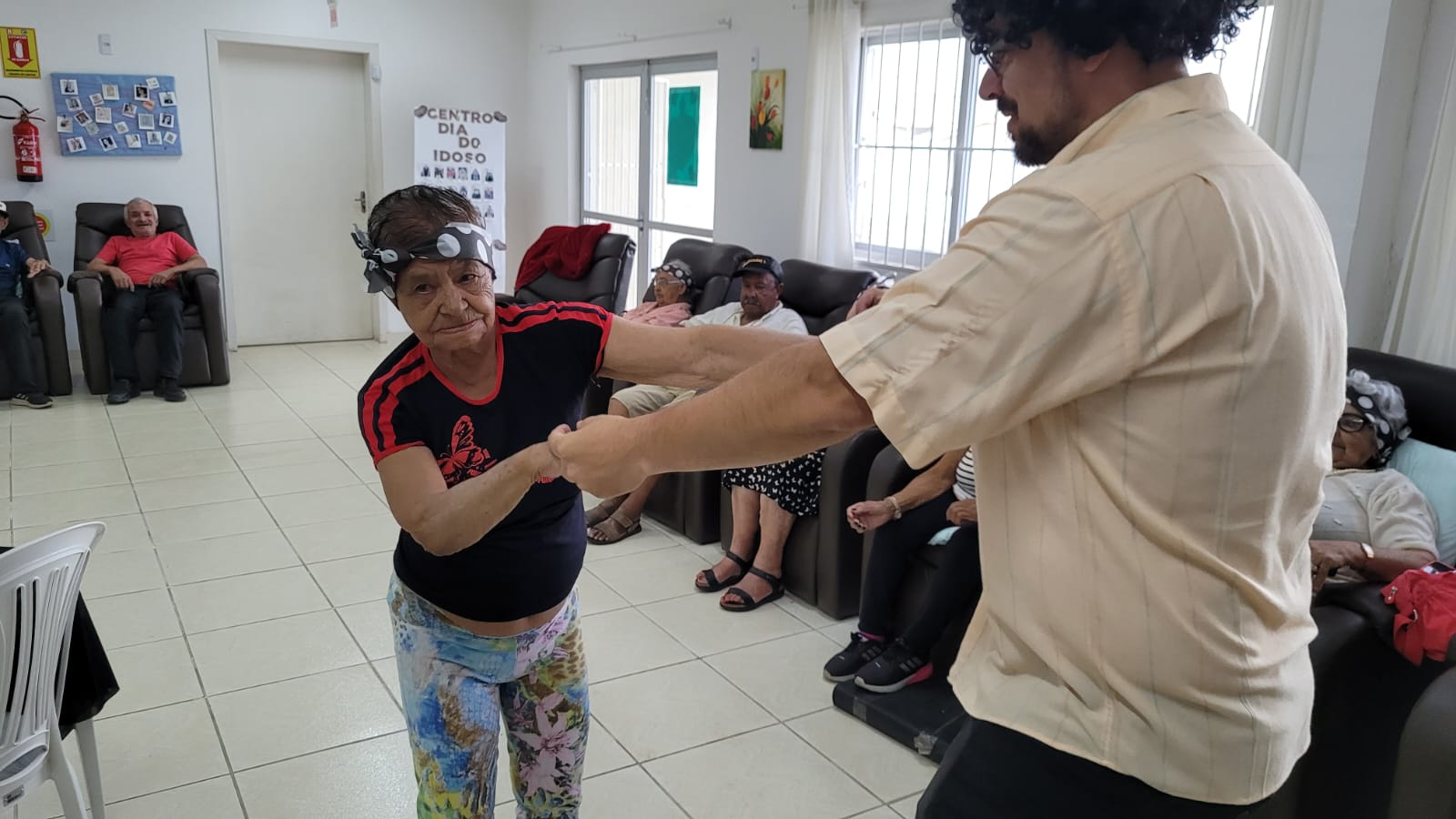 Vitalidade e simpatia são características da senhora Maria dos Prazeres, de 102 anos. Ela é uma das idosas frequentes assíduas do Centro Dia do Idoso. “É ótimo bom saber que tem gente carinhosa que gosta e cuida de nós. Eu me sinto bem, valorizada, querida, e à vontade.”