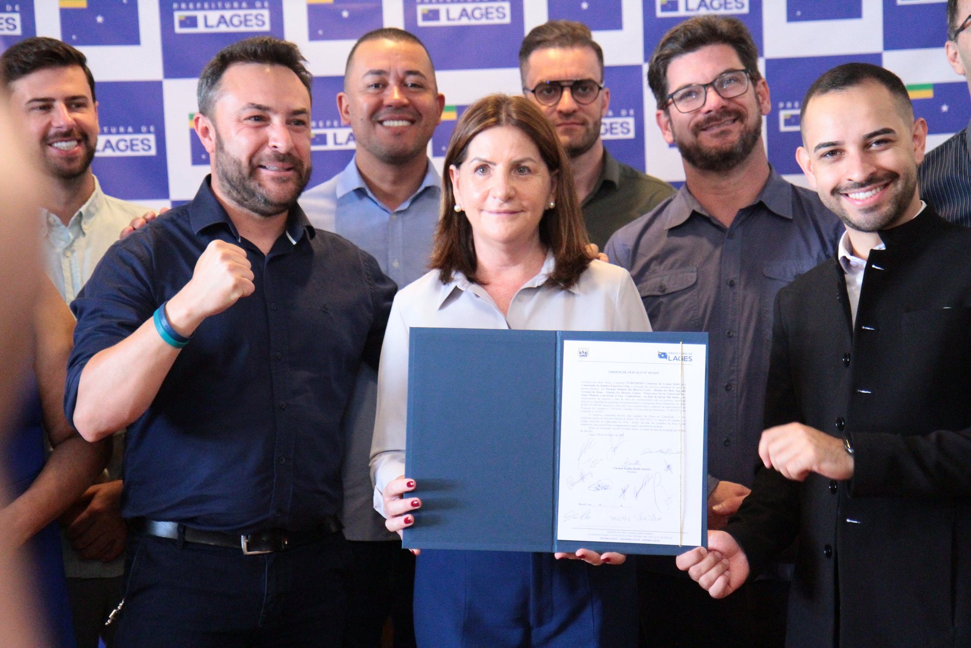 Um novo e importante passo para assegurar espaços de lazer mais seguros e acessíveis às crianças do município foi dado pela Prefeitura de Lages neste último dia do mês de fevereiro. Nesta sexta-feira (28) foi assinada e entregue a ordem de serviço n°: 05/2025 com a finalidade de instalação de grama sintética em seis parques infantis distribuídos em diferentes bairros da cidade. A iniciativa visa melhorar a infraestrutura destes espaços, proporcionando mais conforto e segurança e incentivo à prática de atividades ao ar livre.