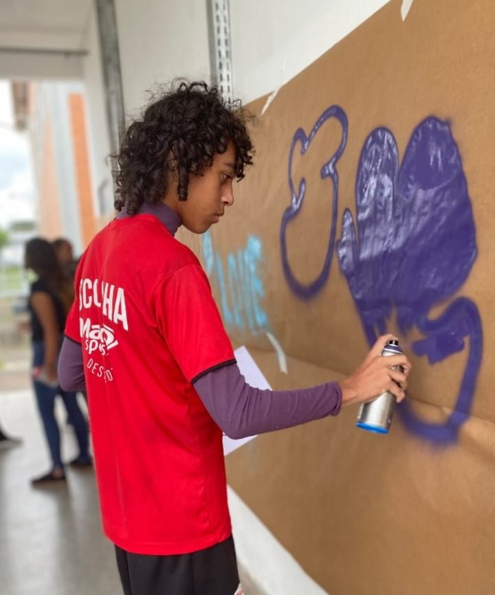 A ação foi possível por meio do Projeto Grafhixarte, com a participação de aproximadamente 40 crianças e adolescentes do CRAS I e CRAS II, com idades entre seis e 16 anos, que tiveram iniciação à técnica do grafite.