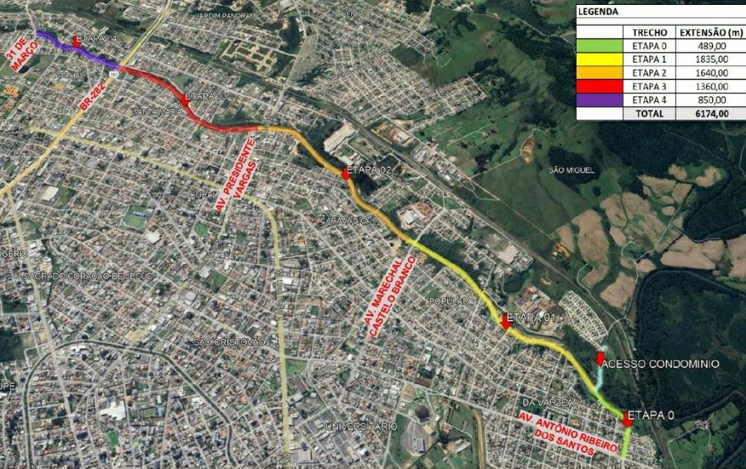 Uma das obras mais aguardadas em Lages foi reassumida pela Prefeitura este ano e segue em andamento, conforme um novo cronograma. A segunda etapa, que compreende os trechos 1 e 2, conta com 40% dos serviços de pavimentação e urbanização executados. A expectativa é que licitação da etapa 3 seja concluída ainda neste primeiro semestre