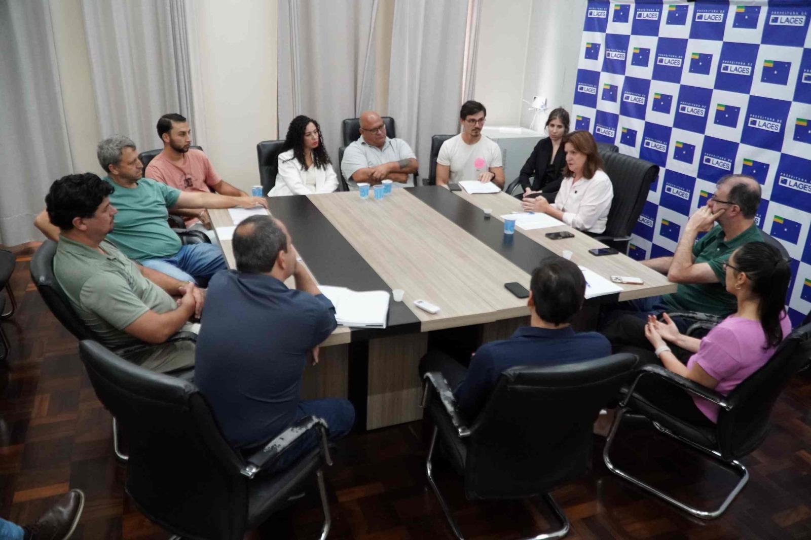Participaram da reunião no gabinete da prefeita nesta quinta-feira, o secretário da Fazenda, Evandro Frigo; secretária da Administração, Fernanda Torres; chefe de gabinete, Samuel Ramos; presidente da Câmara de Vereadores de Lages, Maurício Batalha Machado, e o presidente do SindiServ, Agenor Chaves (Nori), acompanhado por membros do setor jurídico e representantes do Sindicato.