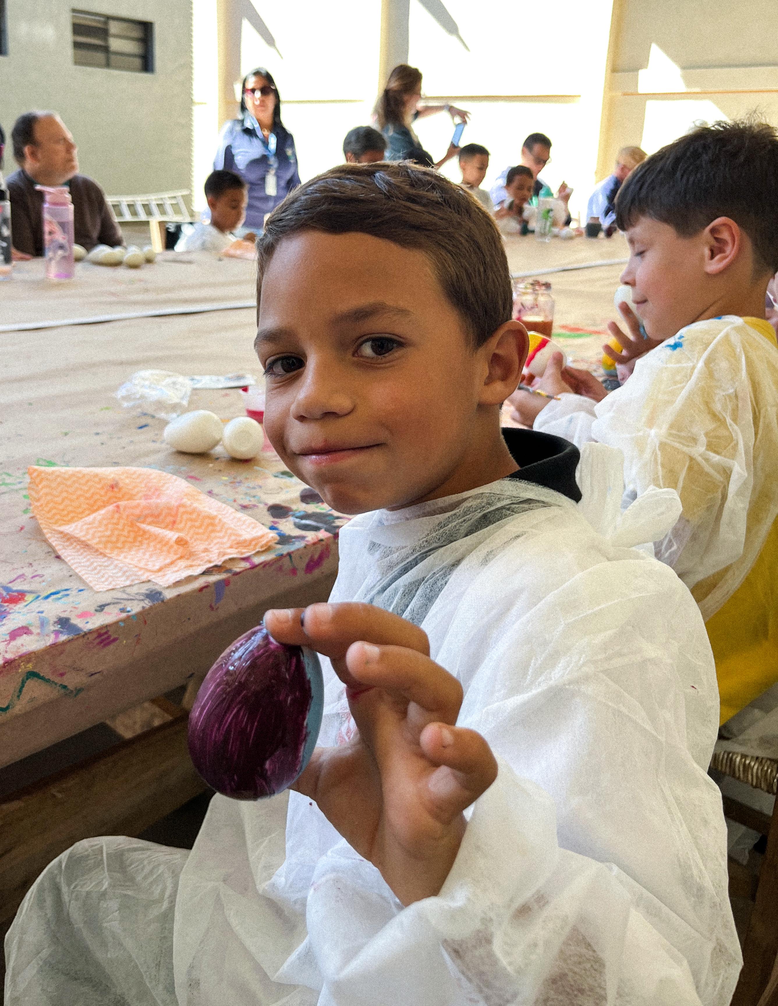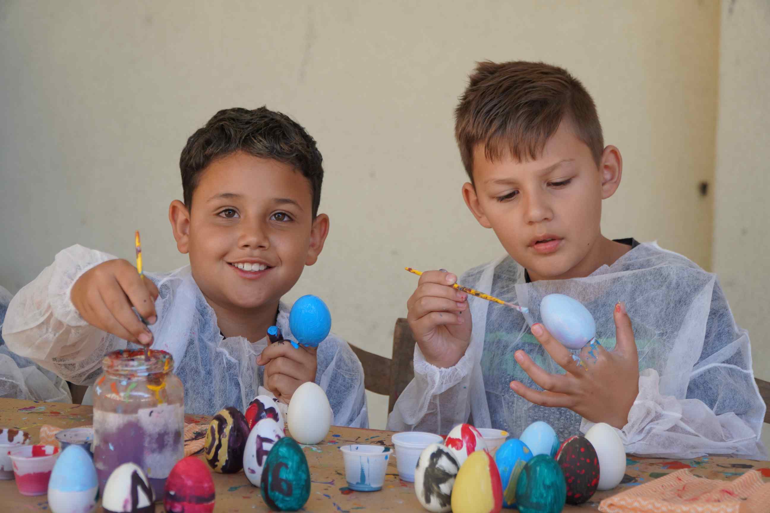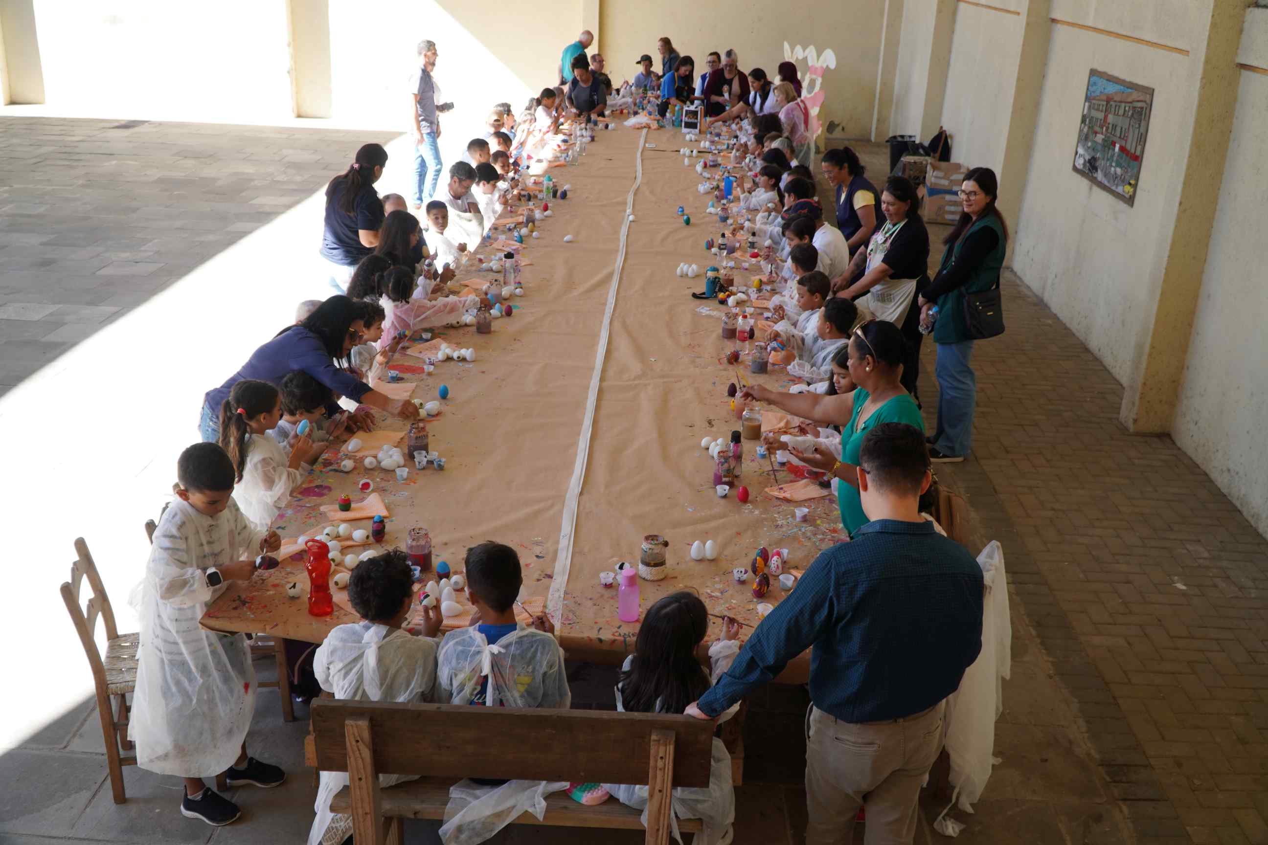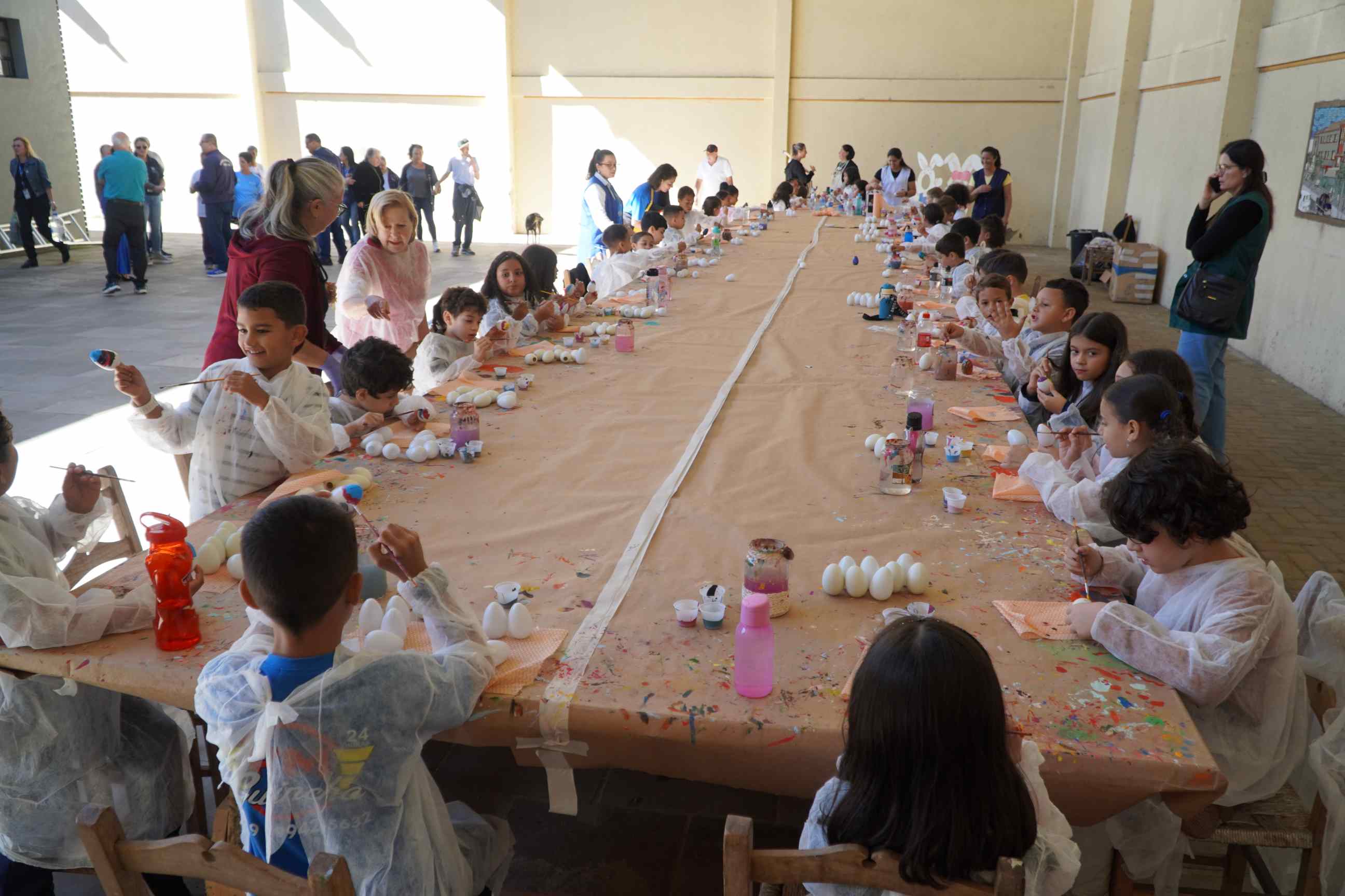 Ao todo, 44 crianças na faixa etária de sete a nove anos, frequentes dos 2º e 4º do ensino fundamental da Escola Municipal de Educação Básica (Emeb) Frei Bernardino, sediada no bairro Frei Rogério, participaram da pintura de casquinhas de ovos de Páscoa na tarde desta sexta-feira (4 de abril). São 24 crianças do 2º ano e 20 do 4º.