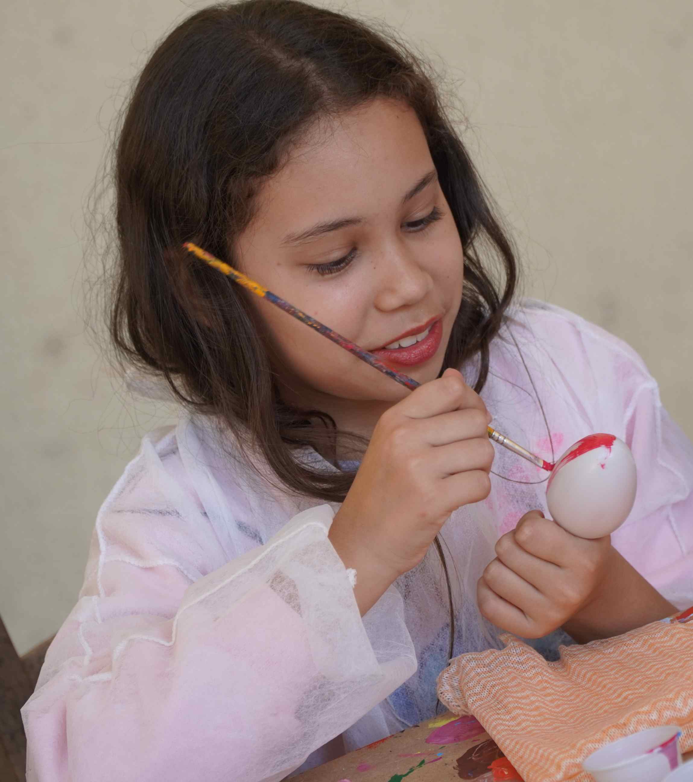 Isabelle Vieira Faifer, nove anos, estuda na Emeb Frei Bernardino e amou o passeio pré fim de semana. “É a primeira vez que a gente faz decoração de Páscoa assim. E gosto de pintar e desenhar. Eu simplesmente adoro a Páscoa. Gosto mais da Páscoa do que do Natal. Na minha escola de dança a gente faz apresentações com coreografias temáticas de Páscoa. A gente faz pintura de Coelhinho no rosto”, revela a garotinha, aluna da Escola de Artes Elionir Camargo Martins desde os sete anos, que já fez balé em uma iniciativa gratuita no bairro São Francisco. “Este ano eu vou querer um ovo de Páscoa famoso, do Harry Potter, o ovo dourado. Dizem que é raro. Vem com um mini microfone”, confessa, lembrando como é a receptividade ao Coelhinho da Páscoa em sua casa. “Eu faço uma barraca na cozinha para esperar ele. Eu tenho um porquinho da Índia, o nome dele é Davi, e a mesma ração que dou para ele, eu coloco para o Coelhinho.”