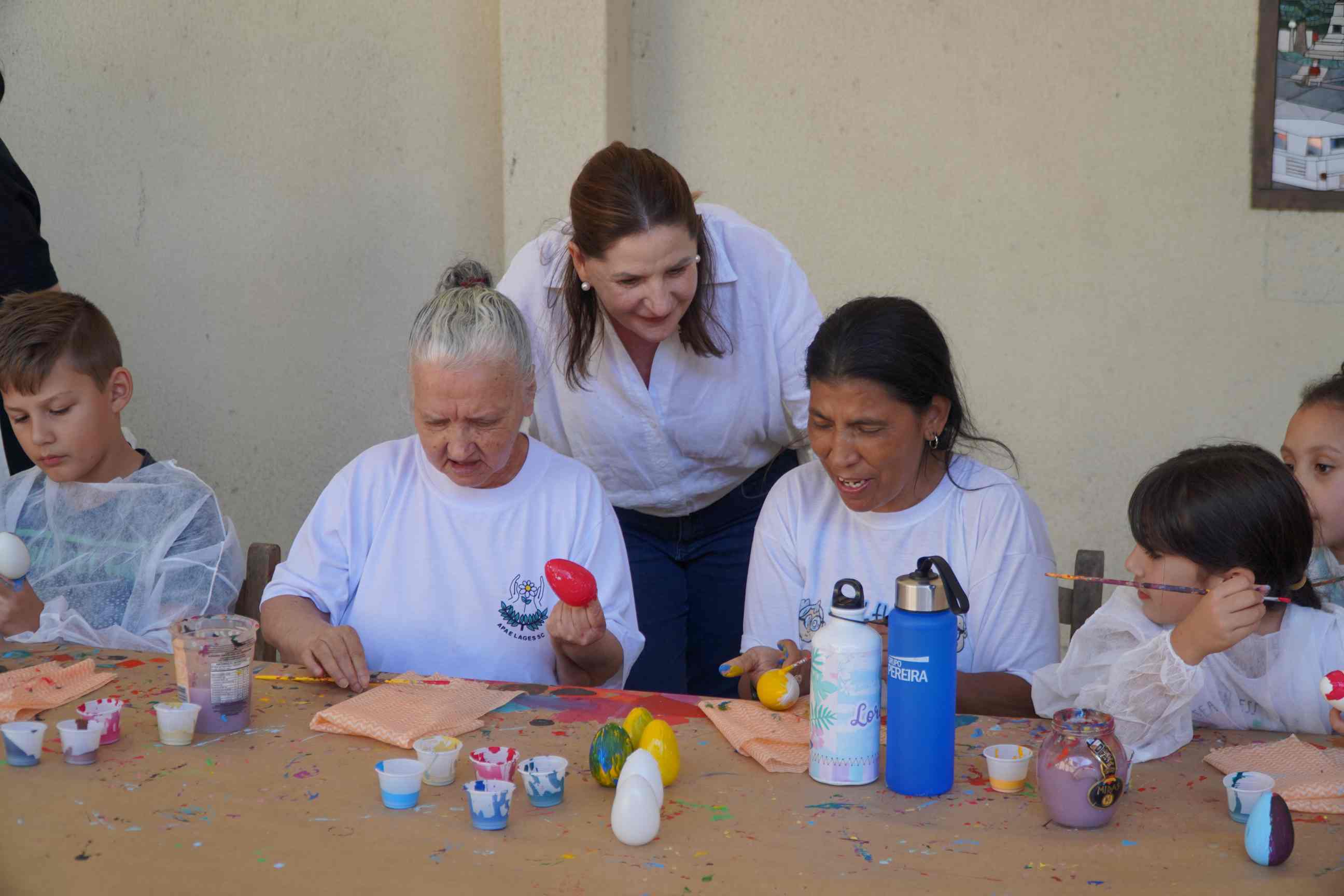 A professora de Apoio à Inclusão, Janete Pereira Waltrick, presta suporte a quatro alunos diagnosticados com Transtorno do Espectro Autista (TEA). Para a educadora, estar em um ambiente de mútuo engajamento exercita habilidades e torna as crianças mais felizes e com segurança de aceitação e igualdade. “A presença das crianças na produção desta Páscoa fará com que deixem sua marca. Elas vão sair na rua, passar pelo Centro e dizer aos papais e mamães: ‘Olha, foi eu que ajudei a fazer’. É gratificante.”