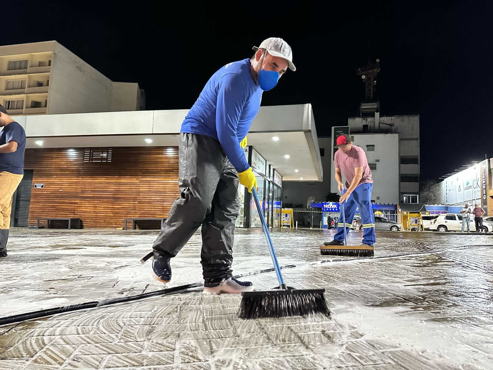 A Prefeitura de Lages, por meio da Secretaria de Serviços Públicos, realizou uma ação de higienização intensiva no Calçadão da Praça João Costa. O trabalho, que envolveu uma equipe de 15 servidores, foi feito no período noturno para evitar transtornos ao fluxo de pedestres durante o dia.
