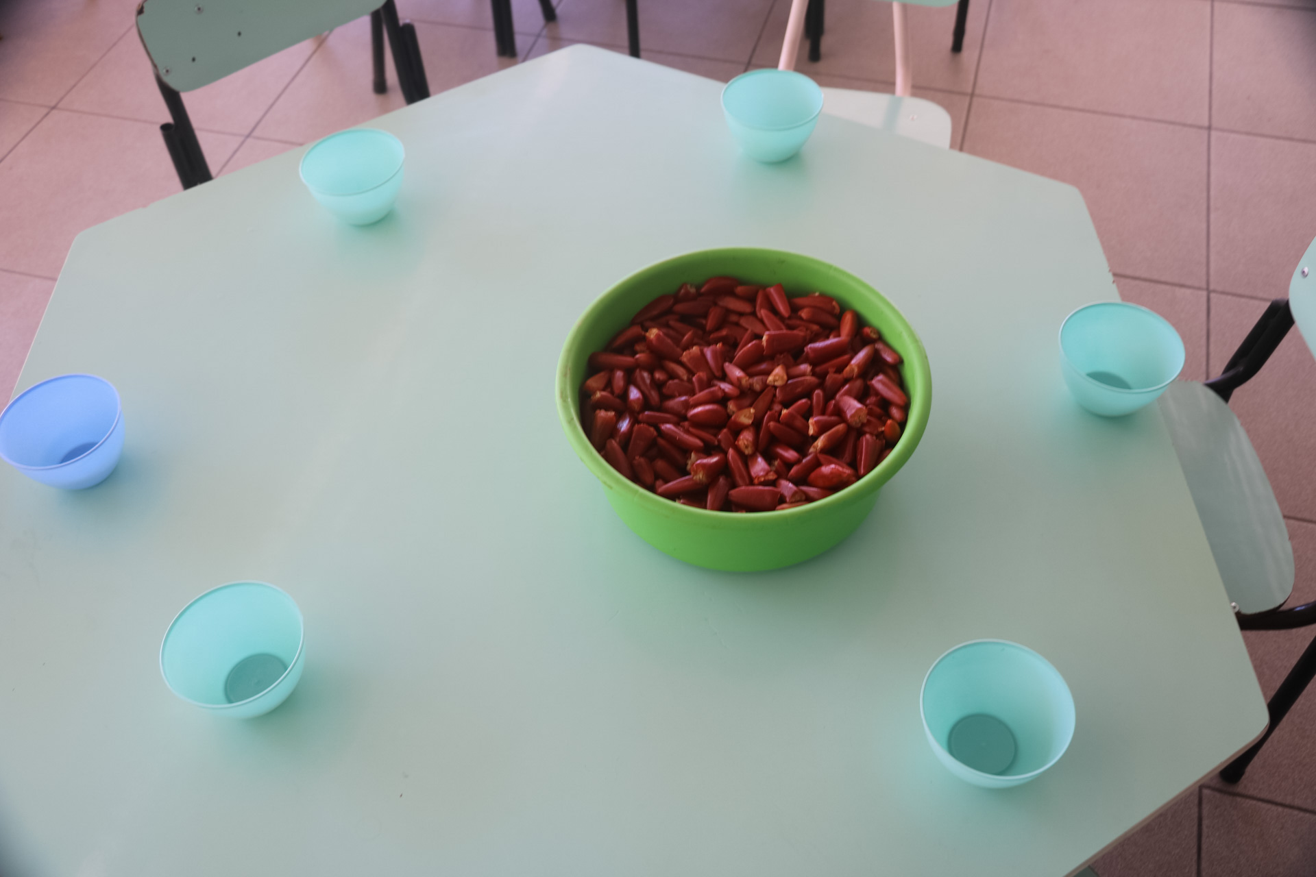 Nos Centros de Educação Infantil Municipais (Ceims) Marieta Camargo dos Santos e Noé José dos Santos, ambos no bairro Brusque, e nas Escolas Municipais de Educação Básica (Emebs) Professora Belizária Rodrigues, localizada no bairro Maria Luiza, e Dom Daniel Hostin, no bairro Dom Daniel, o pinhão foi oferecido de modo cozido. Enquanto isto, na Emeb Hermínio Pinheiro Júnior, bairro do Triângulo, e no Ceim Iraci Souza Steink, bairro Popular, a semente foi preparada como paçoca de pinhão.
