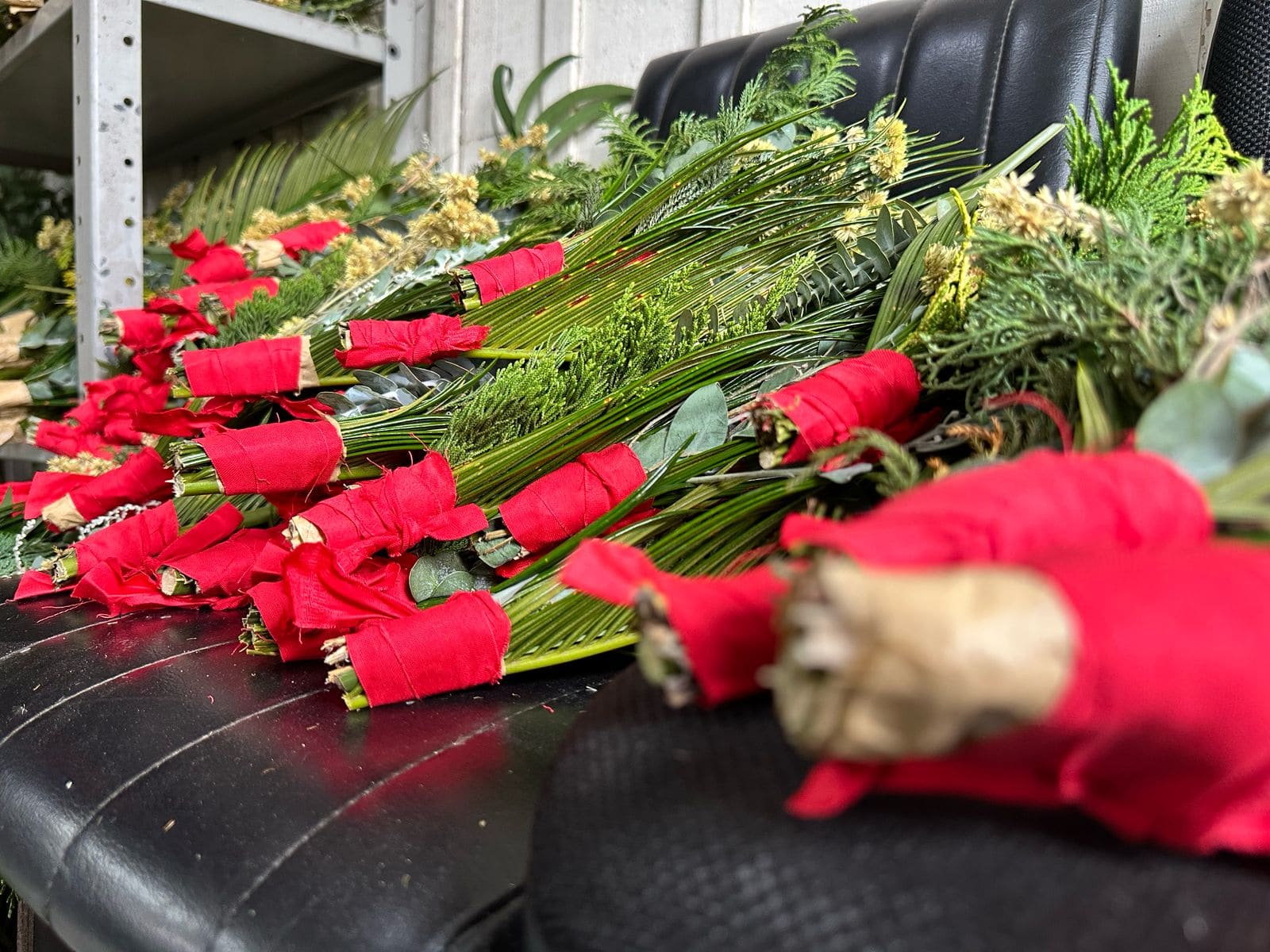 Aproximadamente 1.500 buquês estão em confecção por servidores da Secretaria de Serviços Públicos para o Domingo de Ramos, celebrado neste ano no dia 13 de abril. São compostos por galhos de eucalipto, macela, carqueja, chás, cedro e cedrinho. Os buquês serão entregues durante as três celebrações religiosas previstas na Catedral Diocesana - às 8h, 10h e 19h.