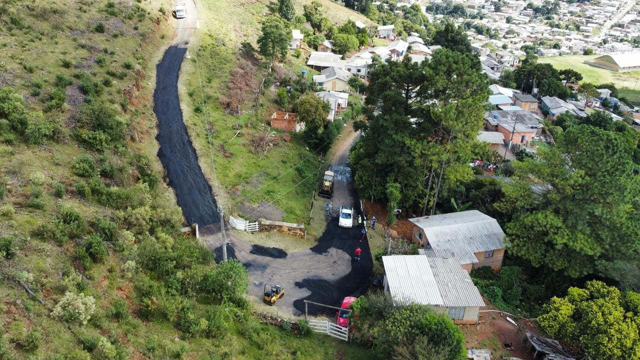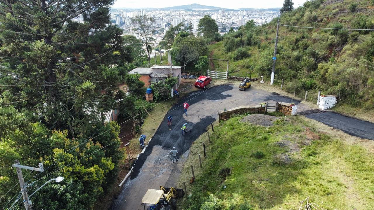A Secretaria de Obras e Infraestrutura atua com a pavimentação asfáltica da principal via de acesso ao local, rua João Odilo Madruga, bairro Morro Grande, melhorando as condições de deslocamento tanto a veículos, quanto aos fiéis que sobem a pé.