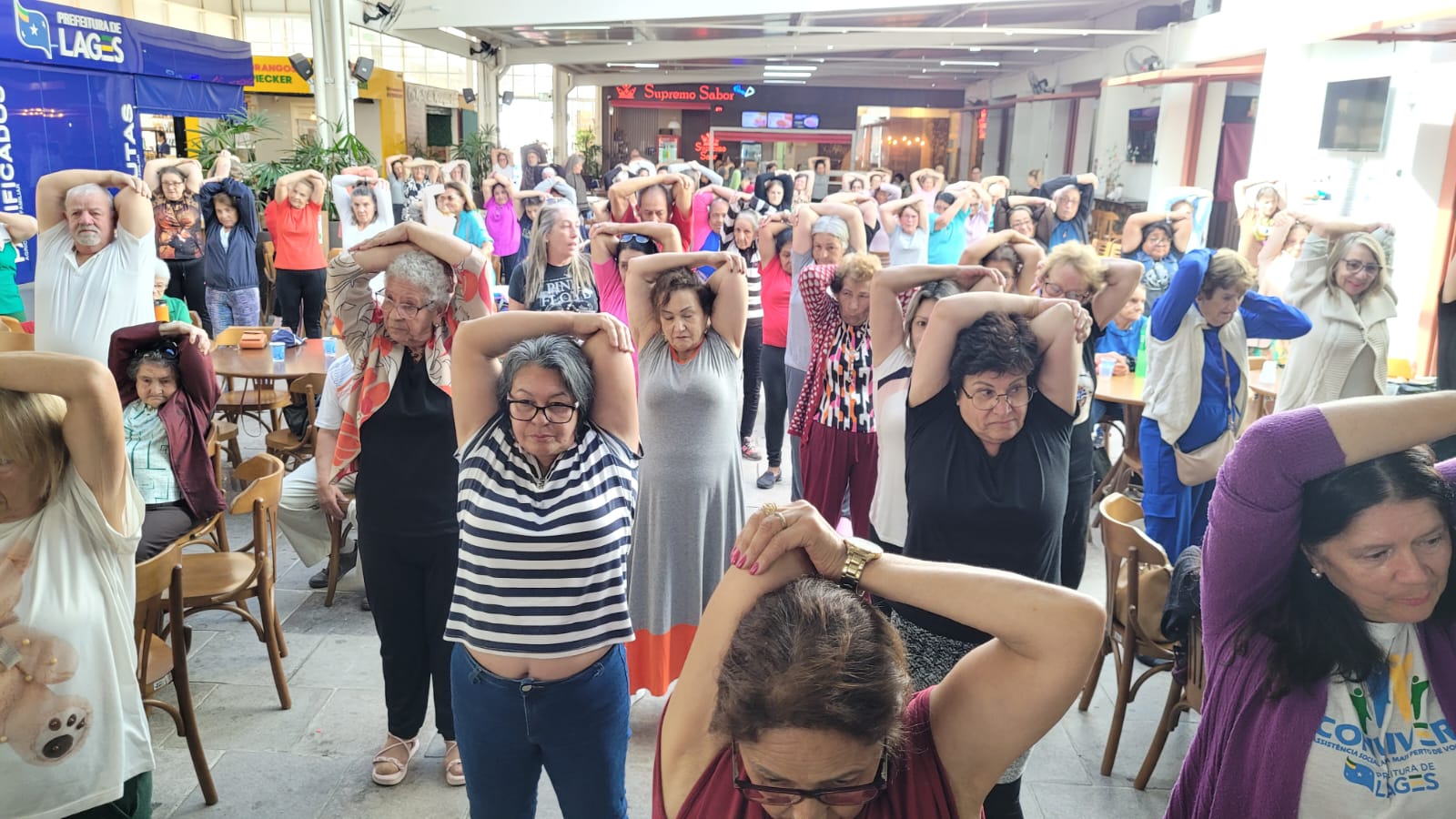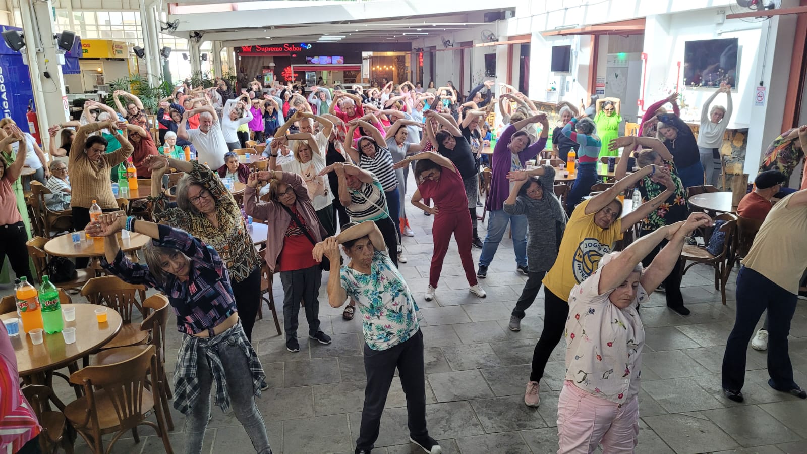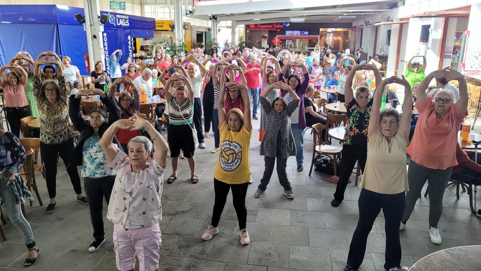 Aulão Conviver: mais de cem idosos atendidos pelos CRAS e grupos de convivência participam de atividades físicas no Mercado Público