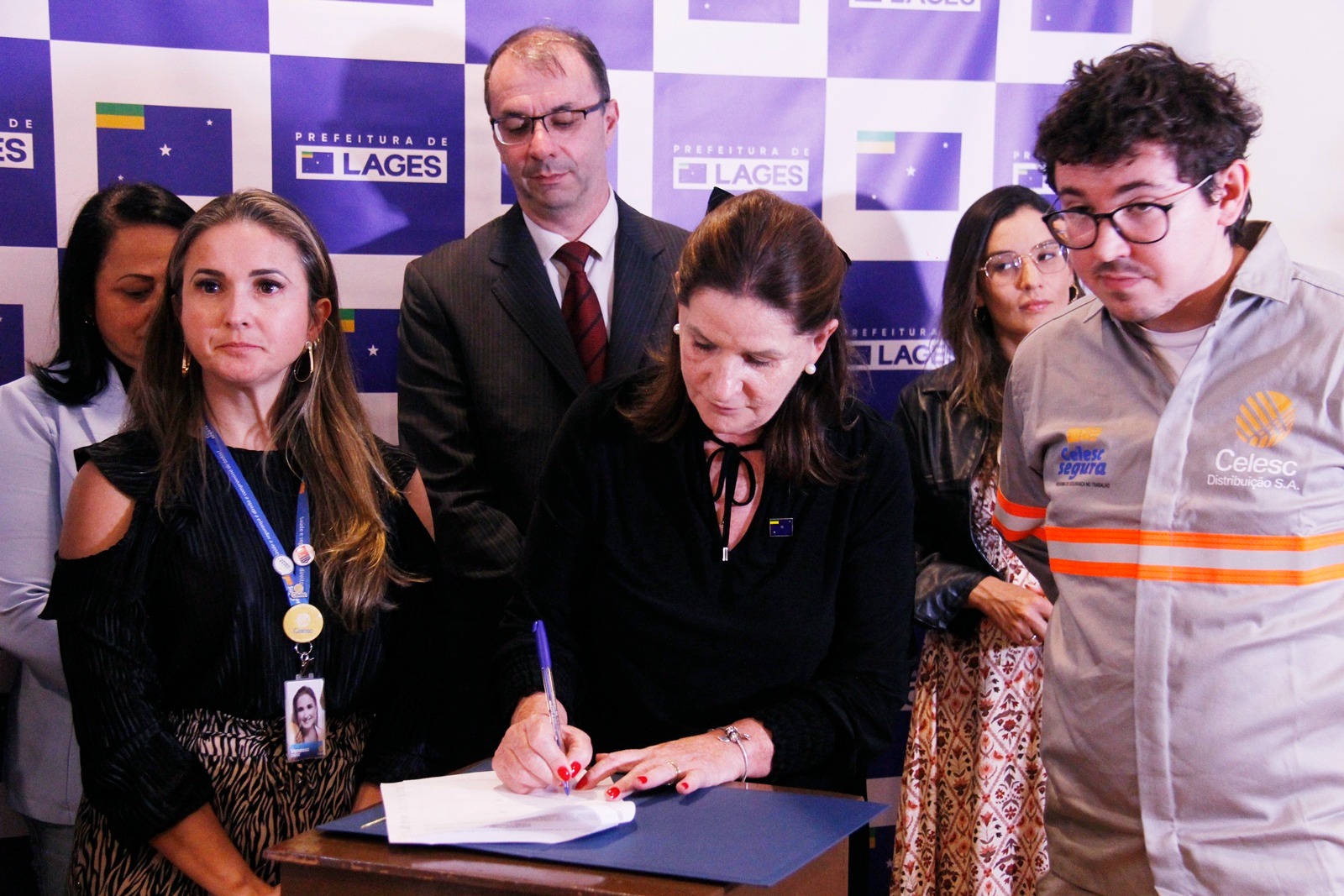 A Prefeitura de Lages firmou mais uma parceria com as Centrais Elétricas de Santa Catarina (Celesc). Ainda no evento do início da Semana Santa de Páscoa, na segunda (14), a prefeita Carmen Zanotto assinou formalmente o documento relacionado a dez contratos pertinentes à ampliação de redes de abastecimento/fornecimento de energia elétrica por parte da Celesc, beneficiando diferentes pontos do perímetro urbano de Lages.