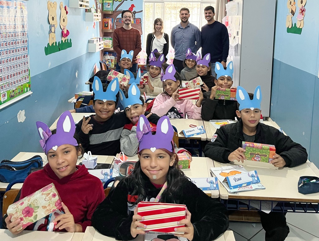 As crianças e estudantes que, por algum motivo, não puderam estar nas escolas nesta quinta-feira, receberão os chocolates em outro dia. Também foram deixados alguns kits extras para que nenhuma criança fique sem o mimo. “Foi um gesto simples, mas o engajamento de todos os envolvidos fez a diferença e a alegria das crianças”, reitera.