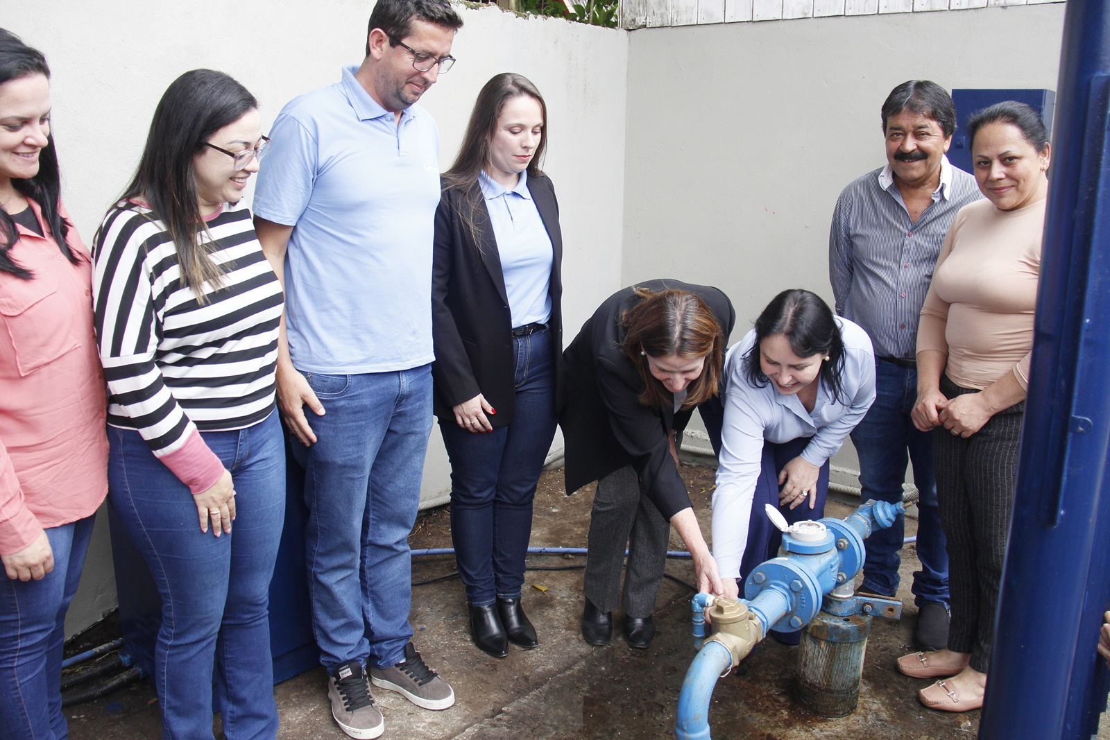 A prefeita Carmen Zanotto, acompanhada da diretora-presidente da Semasa, Paula Granzotto, entregou os serviços de revitalização do poço artesiano na localidade de Salto Caveiras, na tarde desta quinta-feira (24 de abril). Os trabalhos constituíram-se na instalação de um novo dispositivo para bombeamento e mais 19 barras de tubos, para o aumento da vazão de água potável.