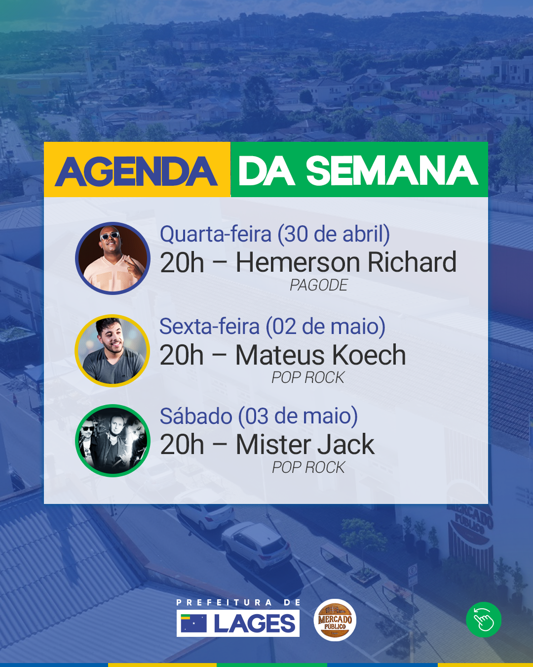 Talentos lageanos do pagode e pop rock agitam feriado estendido nas comemorações ao Dia do Trabalhador no Mercado Público