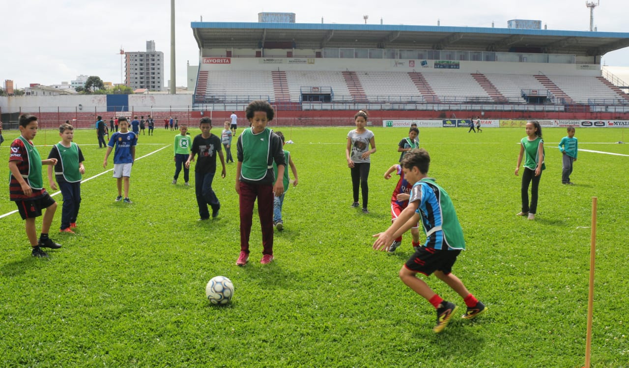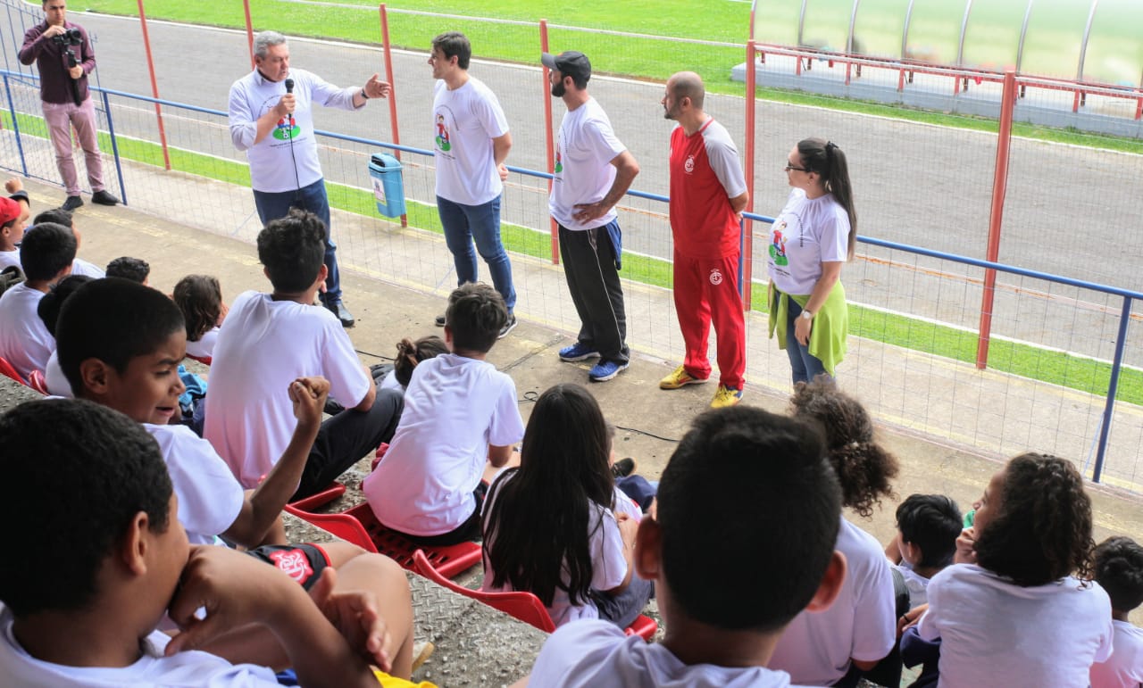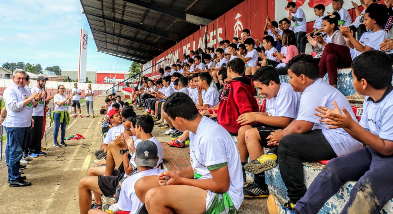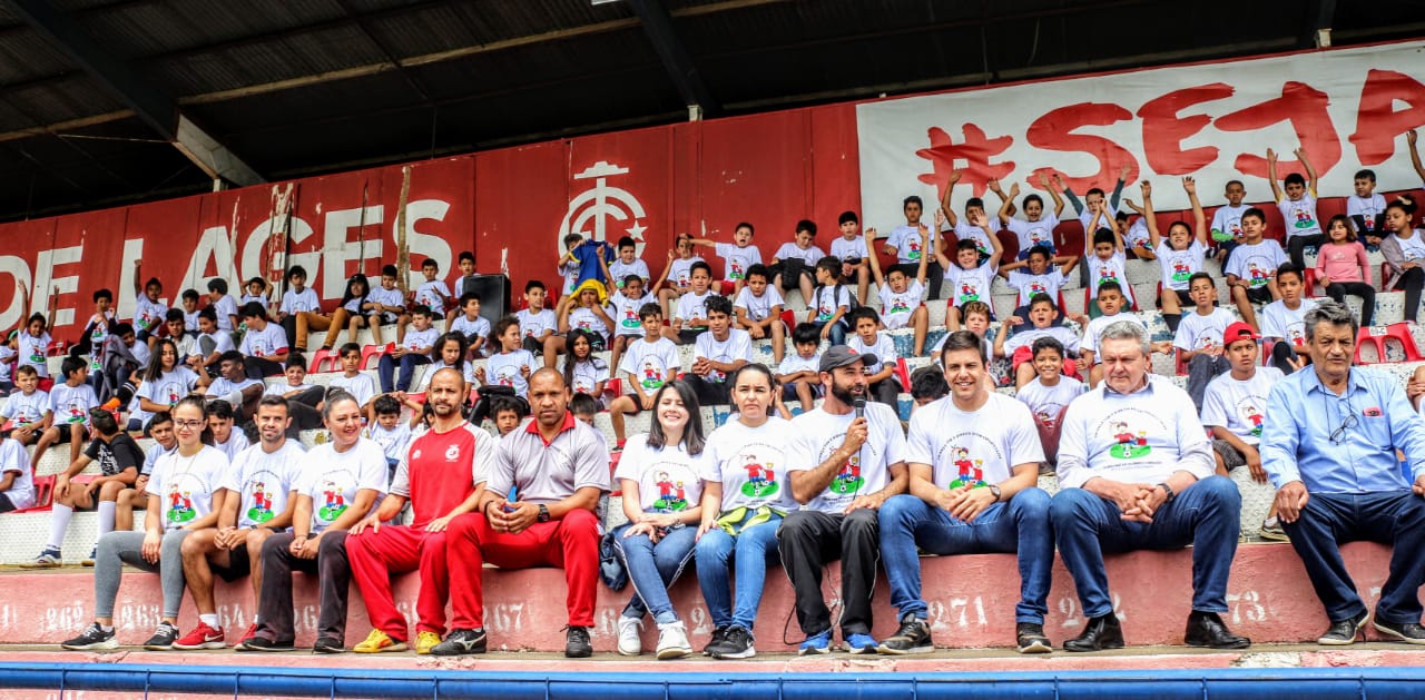 “O esporte abre a cabeça e prepara o corpo para os desafios do dia a dia. Utilizem bem o tempo que vocês têm fora da sala de aula. Pratiquem esporte”, disse o prefeito Antonio Ceron para 150 crianças e adolescentes do projeto social, Lages Leãozinho, durante momento de integração dos 12 núcleos do projeto, reunidos no Estádio Municipal Vidal Ramos Júnior (Tio Vida), na manhã desta quarta-feira (6 de novembro).