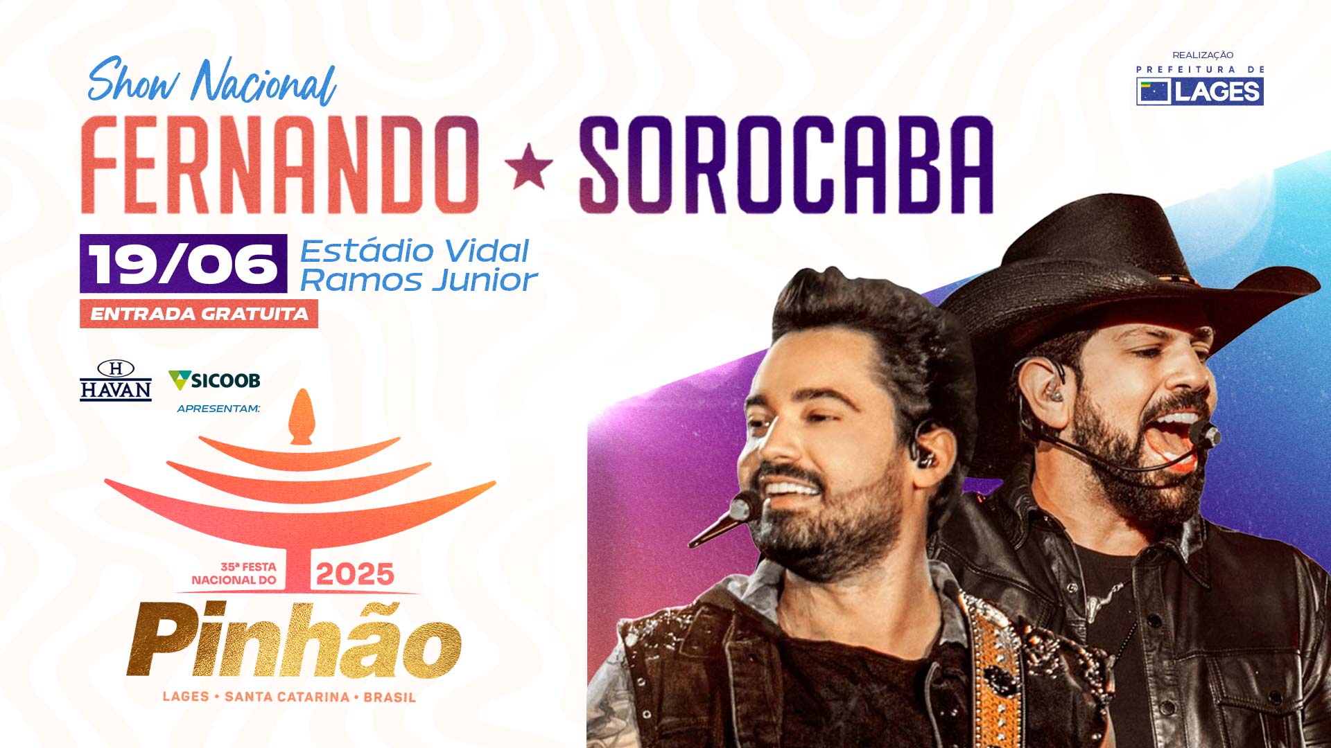 Marcando presença pela quarta vez no maior evento gastronômico e cultural da Serra Catarinense, a dupla sertaneja de hits como “Alô, som”, “Madri”, “Zona de Risco” e “Delegada”, sobe ao palco da Festa Nacional do Pinhão no dia 19 de junho, no estádio municipal Vidal Ramos Júnior.