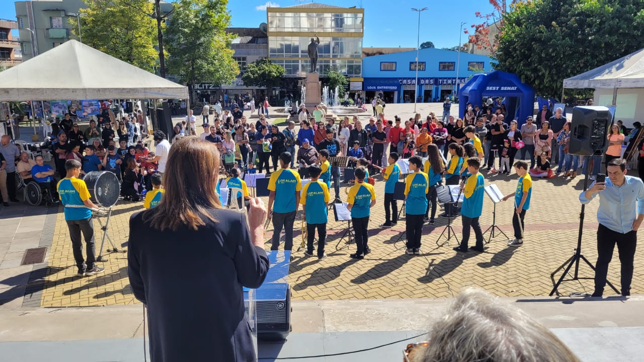 A prefeita Carmen Zanotto esteve na Praça João Costa e salientou sobre a importância do Leão Solidário. “A população pode mudar vidas, a destinação deste imposto devido é aplicada nestes projetos fantásticos que todos presenciaram aqui, crianças e idosos sendo atendidos de forma que merecem, de forma rápida e sem custo algum temos a oportunidade de mudar o destino de pessoas para melhor, o contribuinte será um transformador social, as apresentações de hoje nos orgulham de que os projetos estão no caminho certo”, comenta a prefeita.