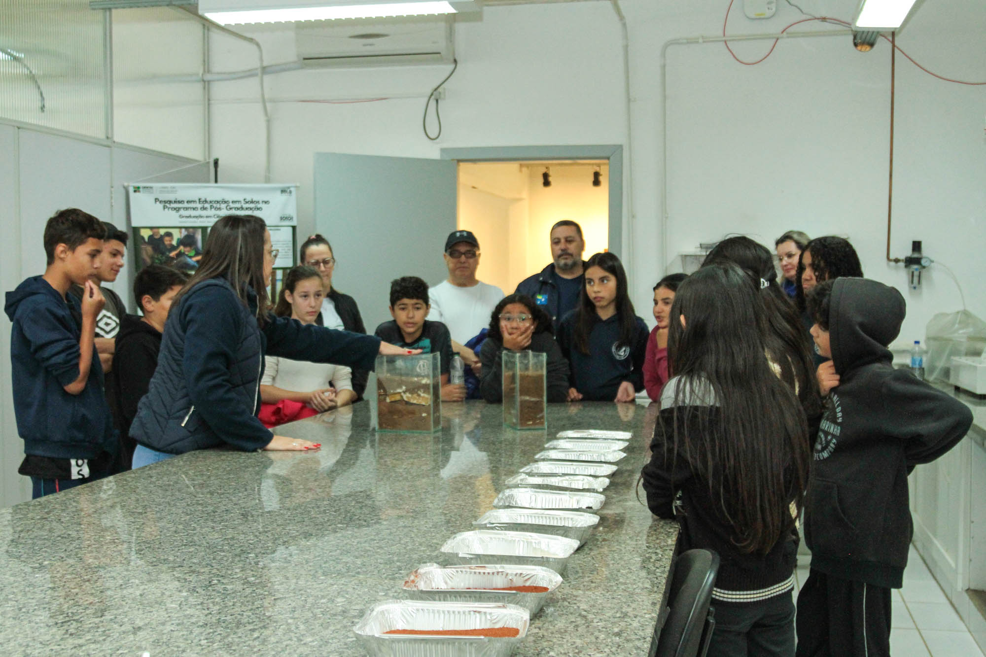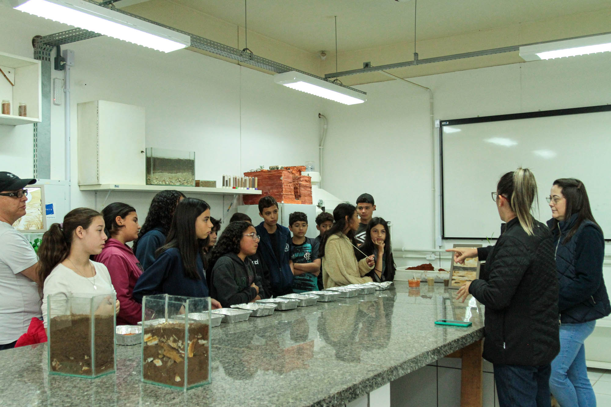 A atividade foi dividida em quatro etapas: primeiro os alunos puderam conhecer o Museu de Solos, o único do Estado de Santa Catarina, com 23 perfis de solos de diferentes regiões e suas peculiaridades. Depois passaram pelo laboratório de manejo de uso e conservação do solo; logo após conheceram a Casa de Vegetação do CAV, que abriga diversos experimentos, finalizando o trajeto no prédio da Agronomia, no laboratório de biologia do solo, onde puderam ver em lupas animais invisíveis ao olho nu, que vivem nos solos, finalizando as atividades com uma oficina de compostagem. “Ficamos muito felizes por nossa escola ter sido agraciada pelo projeto e pela estrutura que estamos recebendo, para que nossos estudantes entendam de forma prática os processos da natureza”, salienta a assessora de direção da E.E.B Zulmira Auta da Silva, Ana Karina Veiga Keckert.