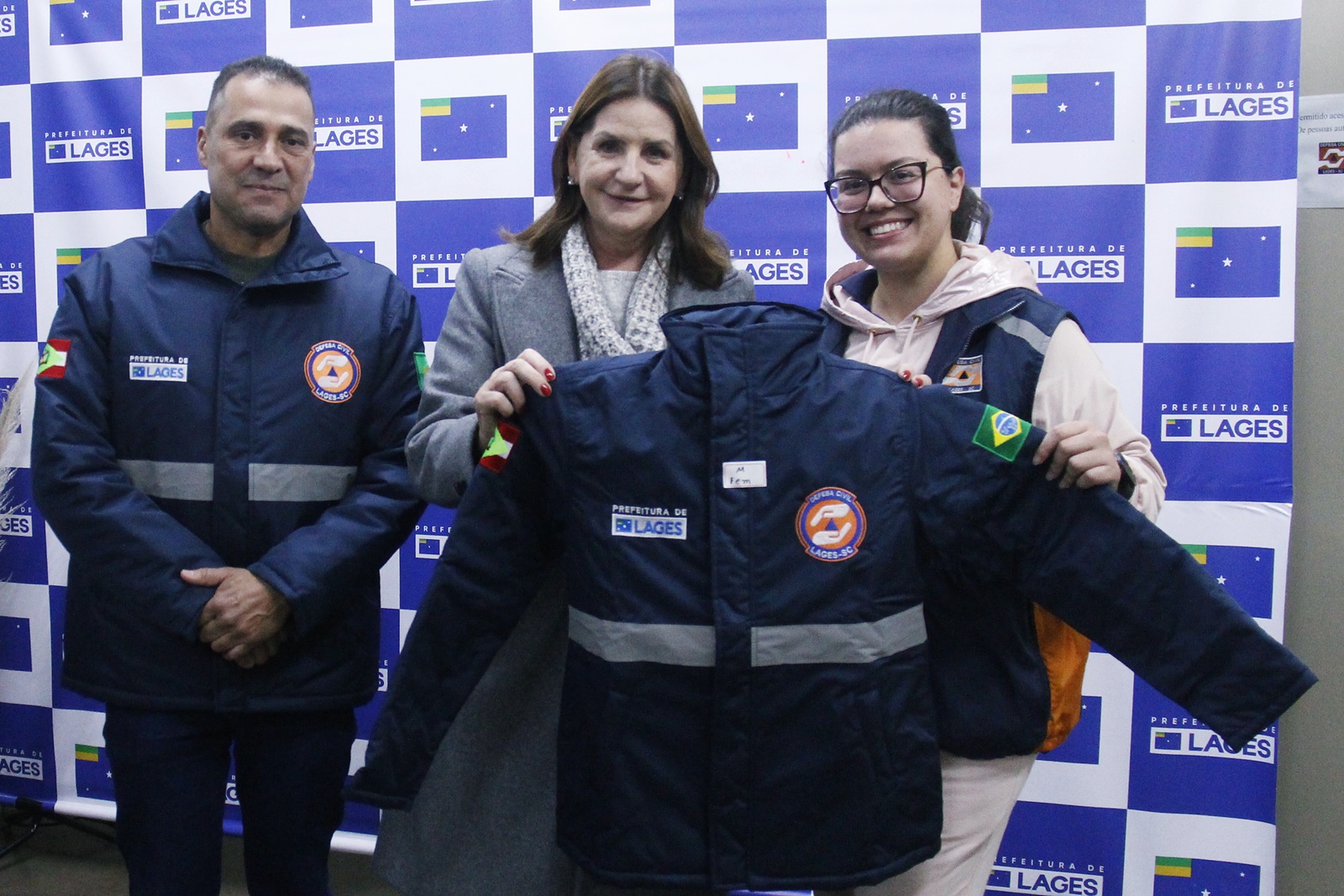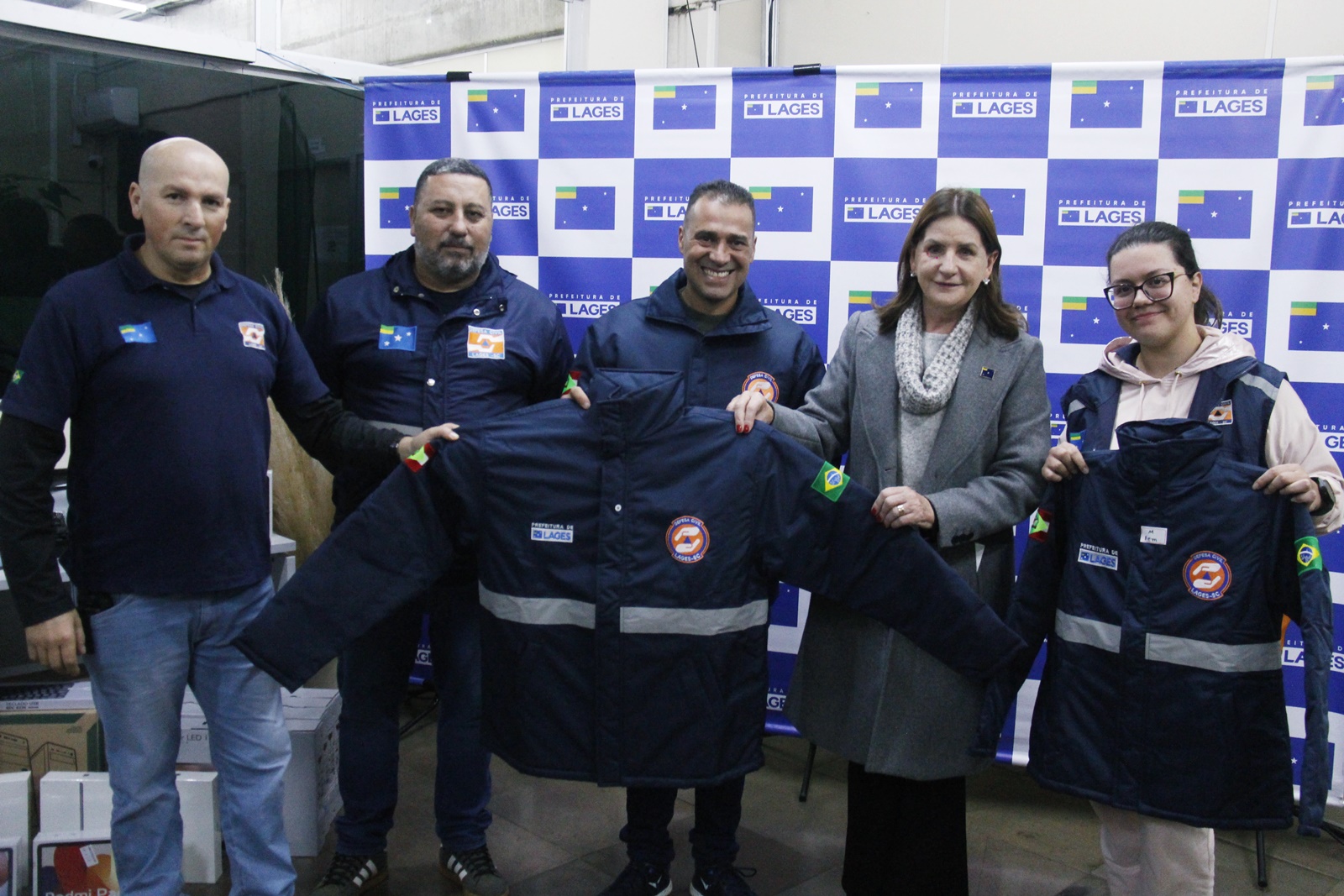 Ao aproveitar a ocasião, com a presença de agentes da Defesa Civil no evento, jaquetas de trabalho azuis com faixa refletiva na cor cinza, confeccionadas para identificação e proteção diante de chuva, vento e do clima frio deste fim de maio, no outono, e duração inteira do inverno, com começo no próximo mês [junho], foram entregues aos profissionais da linha de frente e administrativos, pela prefeita Carmen Zanotto e pelo secretário executivo, Paulo da Silva Ribeiro (Sargento Ribeiro).