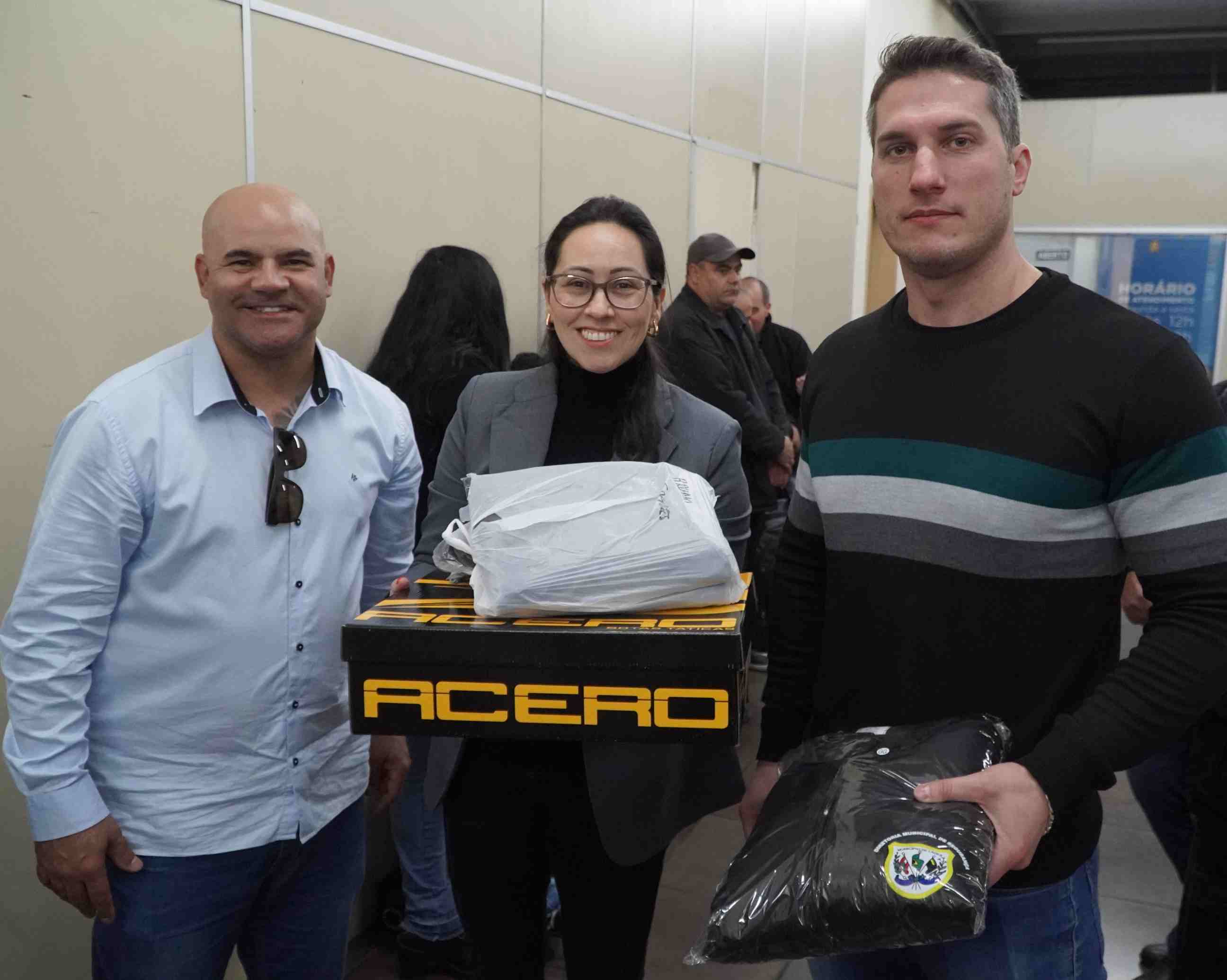Trata-se de aproximadamente 60 uniformes completos destinados a agentes de segurança, vigias, zeladores e colaboradores da seção administrativa/burocrática e de atendimento ao público. Os uniformes completos são compostos por duas calças táticas, duas camisetas de manga curta, duas camisetas de manga longa, uma combate short, uma jaqueta e um par de coturnos. Investimento de R$ 141.050, recursos financeiros públicos provenientes do próprio Município. Nesta sexta foram repassados cerca de 60 kits de uniformes. O restante será entregue mediante retirada por parte dos profissionais, o que naturalmente ocorrerá gradativamente. “O Poder Público municipal está em constante preocupação com a segurança, saúde, bem-estar e qualidade aos servidores ao desempenhar seu trabalho”, defende a prefeita Carmen Zanotto.