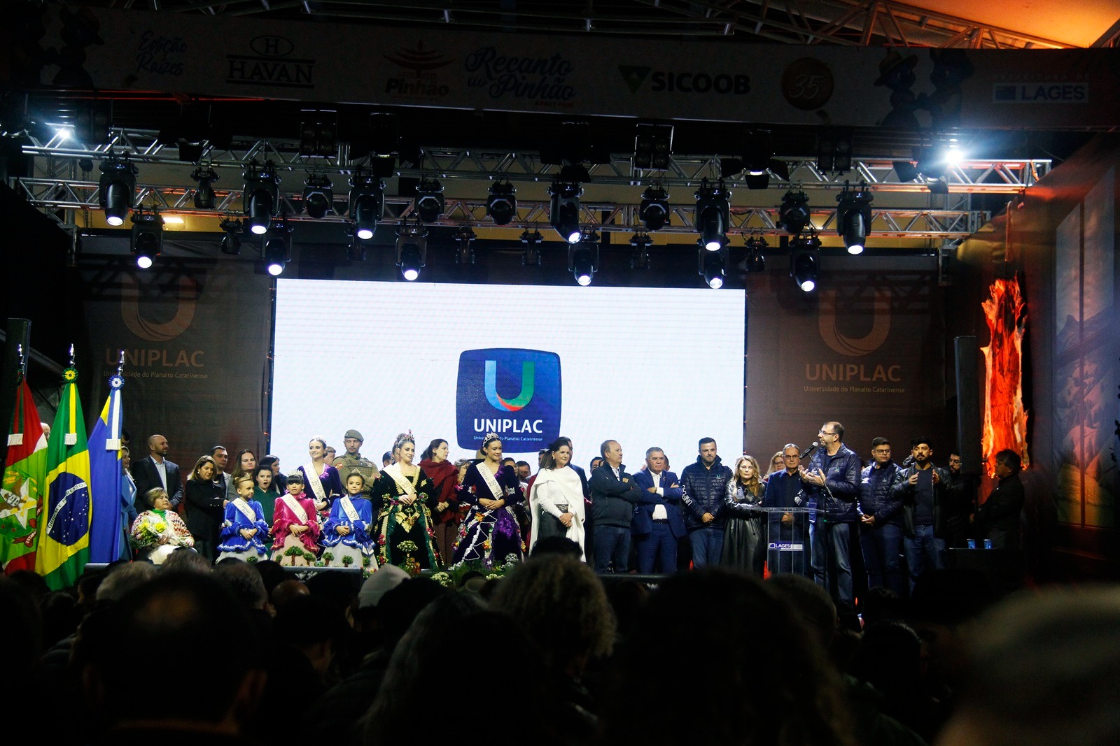 Os termômetros marcavam os 11ºC nesta noite de outono com clima agradável para os lageanos e lageanas, quando a prefeita Carmen Zanotto, juntamente com o governador do estado, Jorginho Mello, Realeza da Festa e demais autoridades do município, deu início a 35ª Festa Nacional do Pinhão – edição Raízes – no palco do Recanto do Pinhão Aracy Paim, no Calçadão da Praça João Costa, nesta sexta-feira (6 de junho).