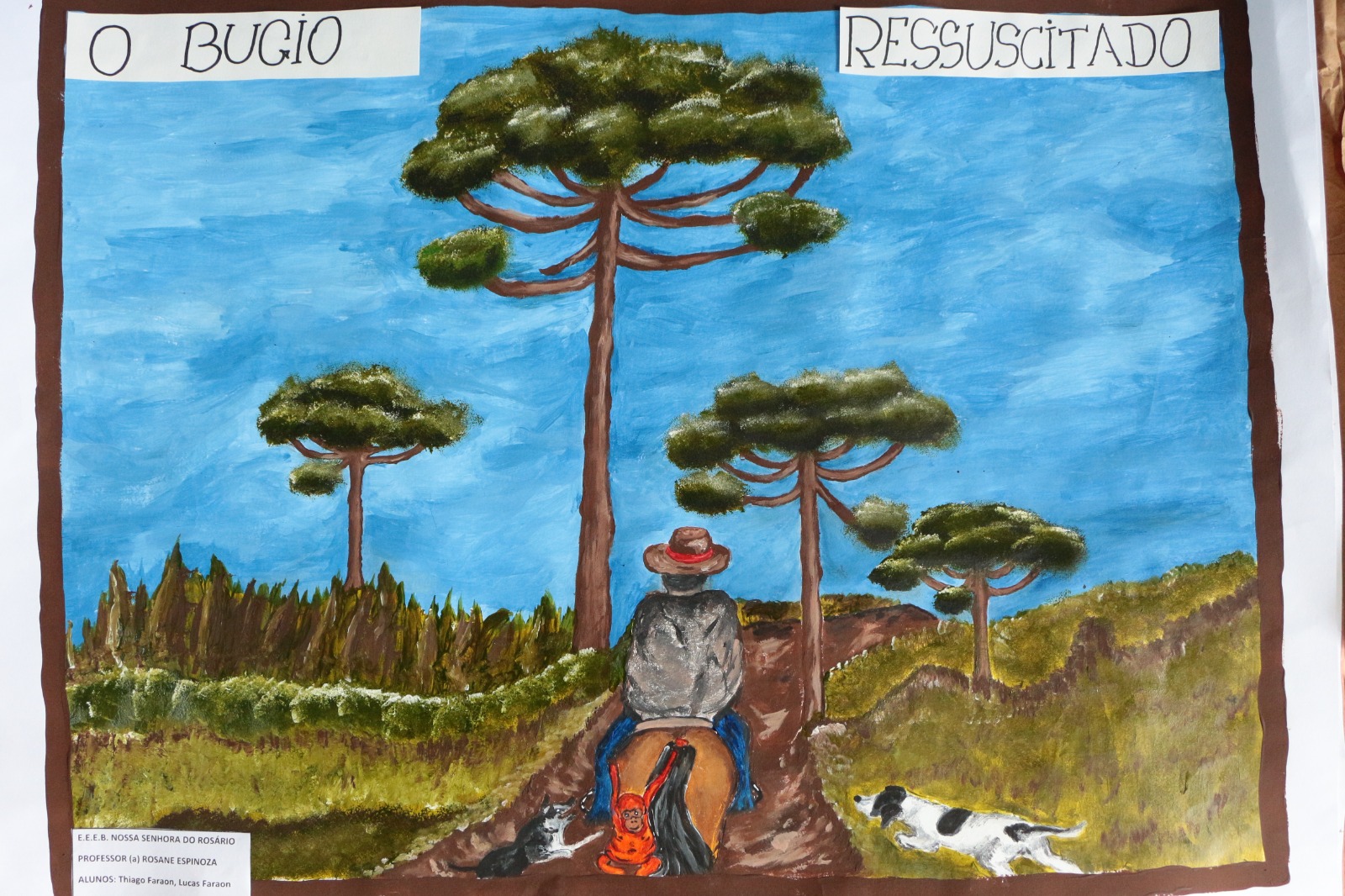 Fotos/ reprodução: Fábio Pavan e Nilton Wolff Considerado um dos maiores símbolos da identidade cultural da Serra Catarinense, agora a Sapecada da Canção Nativa e da Serra Catarinense estão representadas, sob a perspectiva de estudantes, em desenhos e pinturas inspirados nas letras das canções selecionadas para o festival deste ano