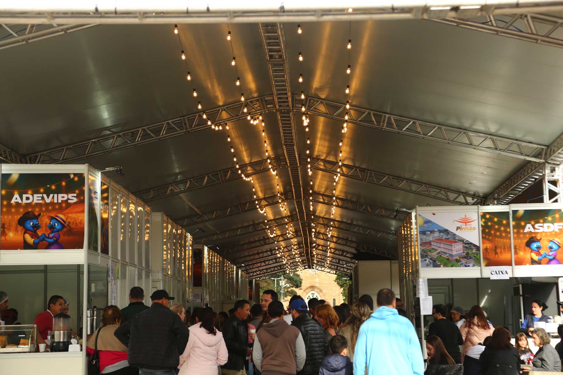 A Rua Nereu Ramos, no Centro de Lages, foi transformada em uma verdadeira praça gastronômica para celebrar os sabores da 35ª edição da Festa Nacional do Pinhão. Coberta especialmente para o evento, a via abriga nove estandes de entidades filantrópicas que oferecem uma diversidade de pratos típicos, com destaque para o pinhão como ingrediente principal.