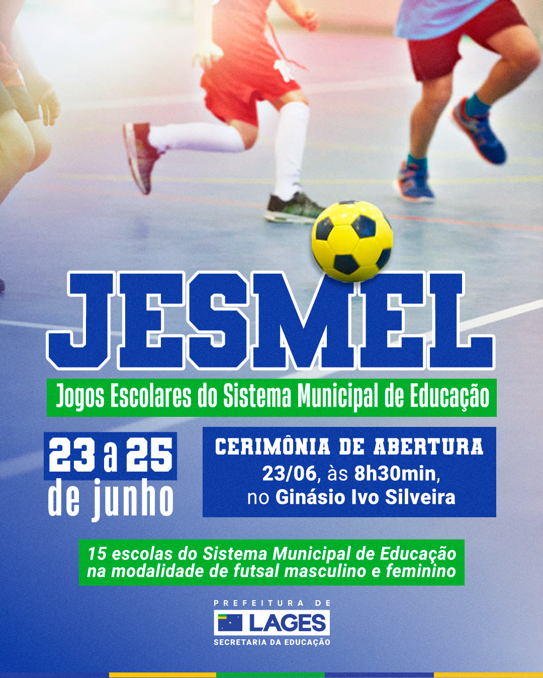 A Secretaria Municipal da Educação retoma, em 2025, os Jogos Escolares do Sistema Municipal de Educação (Jesmel). A cerimônia de abertura está marcada para a próxima segunda-feira (23 de junho), às 8h30min, no Ginásio Municipal de Esportes Ivo Silveira. Da primeira etapa irão participar 15 escolas do Sistema Municipal de Educação na modalidade de futsal masculino e feminino - categoria até 14 anos. Serão três dias de competição, entre 23 e 25 de junho. A iniciativa visa fomentar a prática esportiva entre estudantes do 4º ao 9º ano do ensino fundamental.