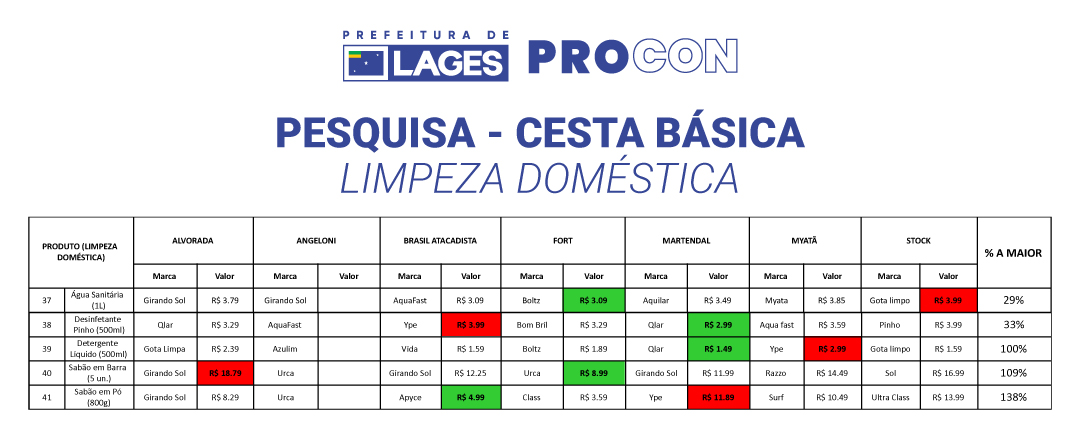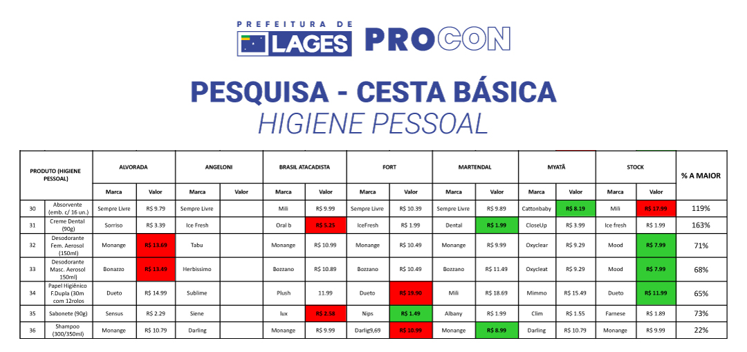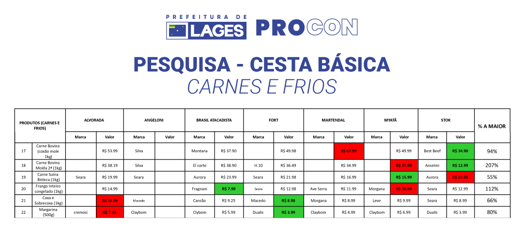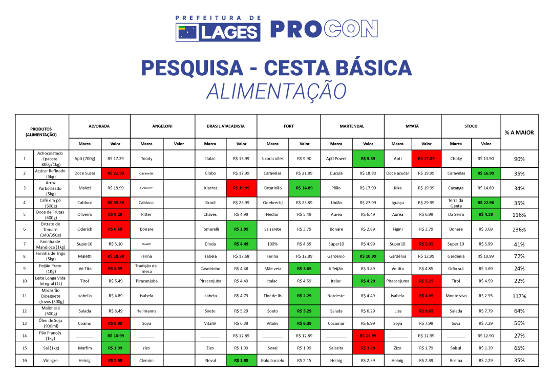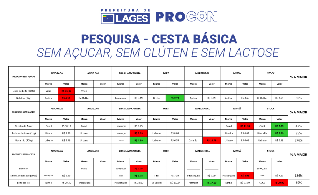 O Programa de Defesa do Consumidor de Lages (Procon) realizou uma pesquisa completa sobre os itens da cesta básica para mês de junho e adicionou produtos específicos, muitas vezes tidos como especiais, pois fazem parte da dieta de uma pequena parcela da população: produtos sem glúten, sem lactose e sem a adição de açúcares. Também foram incluídos itens de limpeza e produtos de higiene pessoal.