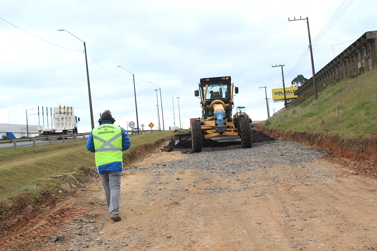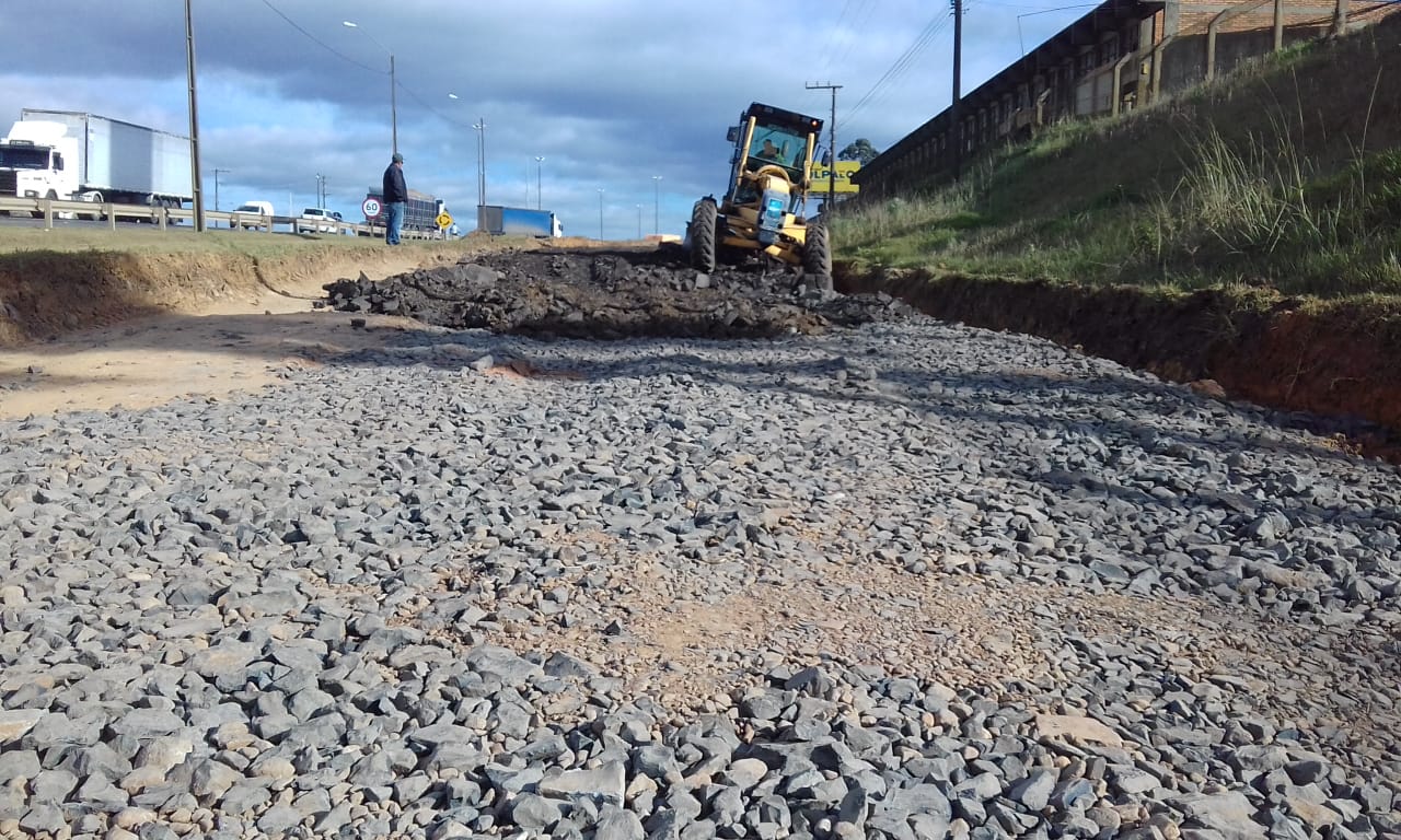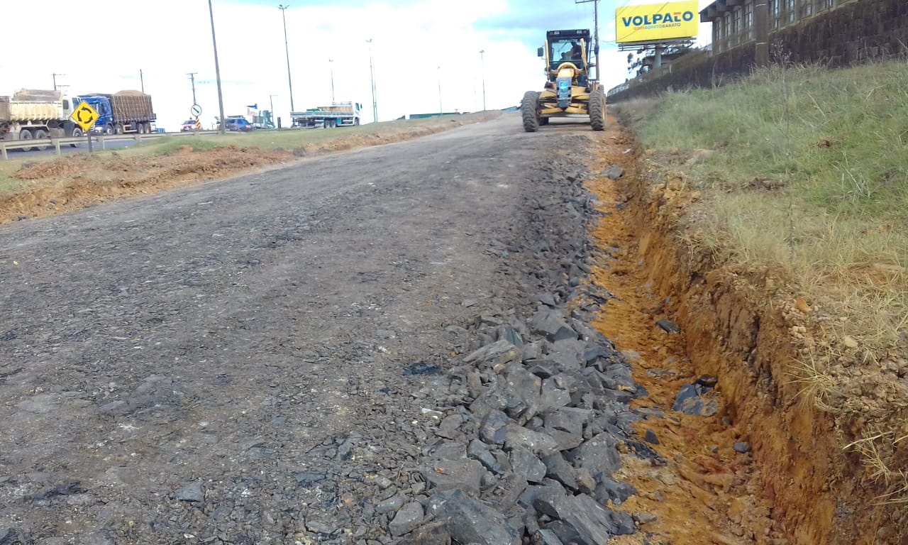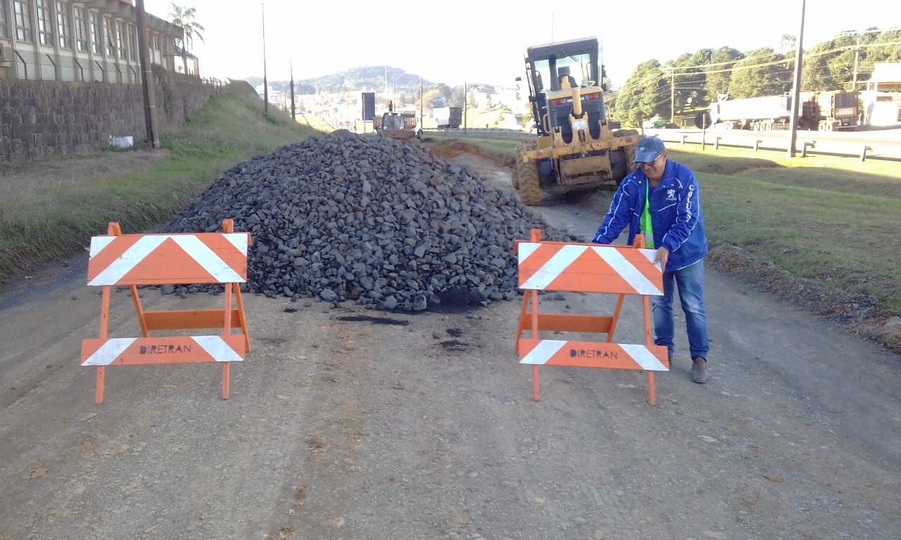 O material de rejeito foi fornecido pela Autopista Planalto Sul, empresa concessionária da rodovia, já o cascalho, maquinário e mão de obra foram encaminhados pela Secretaria do Planejamento e Obras. Cavaletes da Diretoria de Trânsito (Diretran) sinalizam a interdição provisória de fluxo no local.