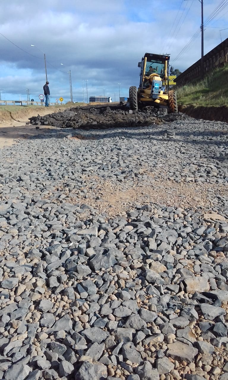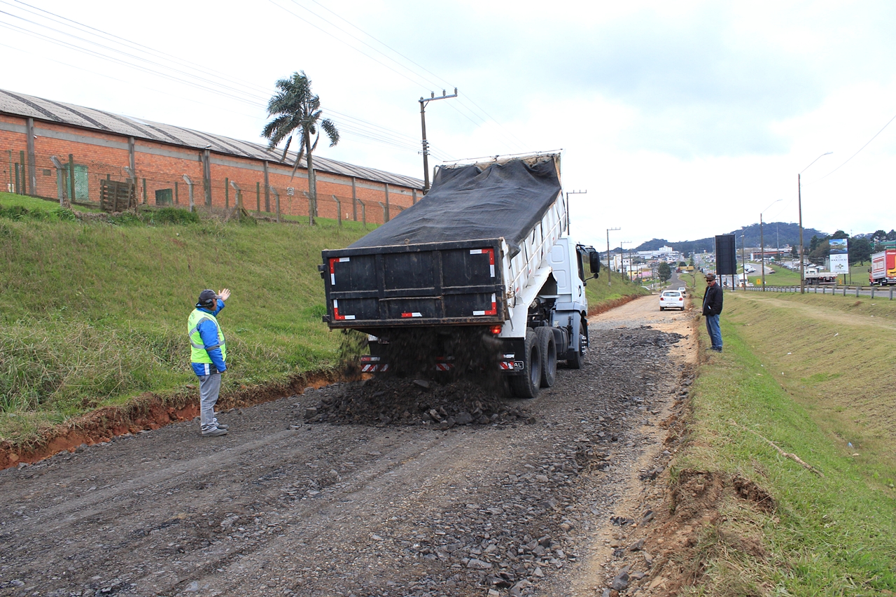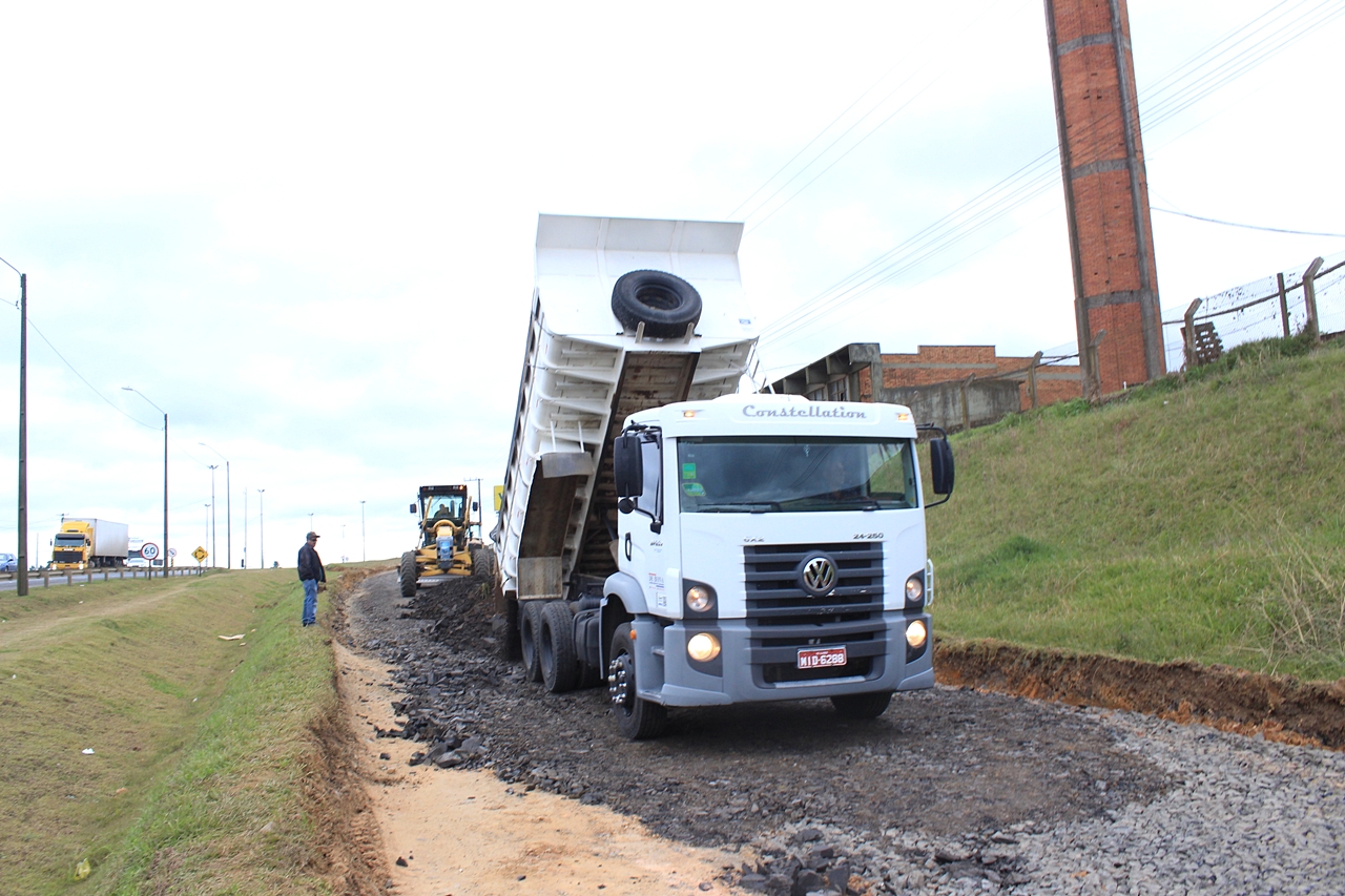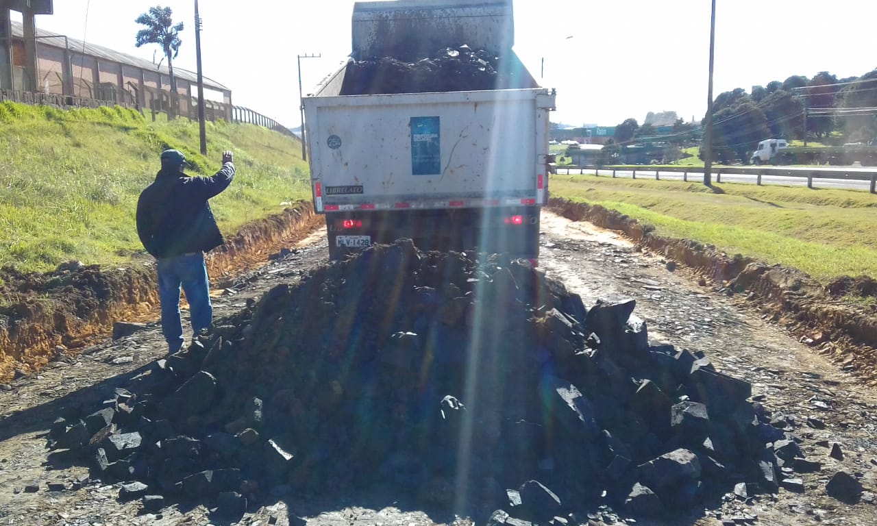 O material de rejeito foi fornecido pela Autopista Planalto Sul, empresa concessionária da rodovia, já o cascalho, maquinário e mão de obra foram encaminhados pela Secretaria do Planejamento e Obras. Cavaletes da Diretoria de Trânsito (Diretran) sinalizam a interdição provisória de fluxo no local.