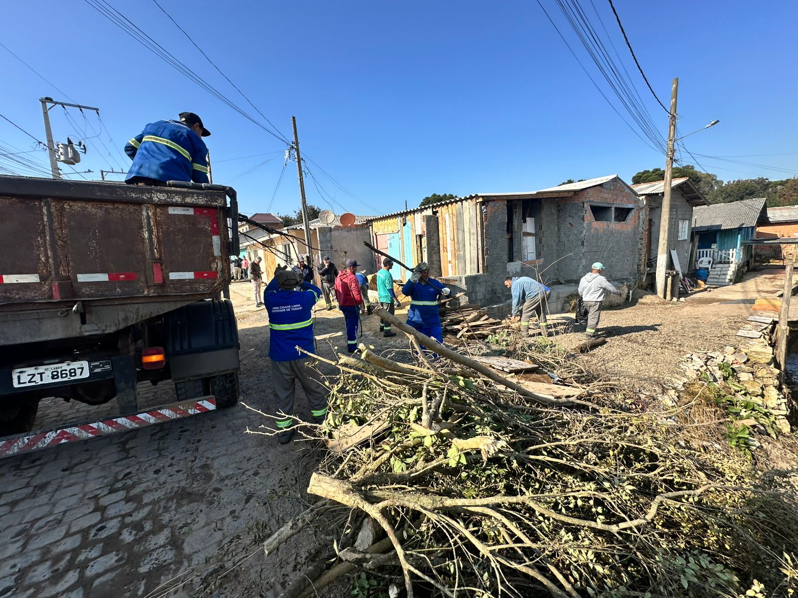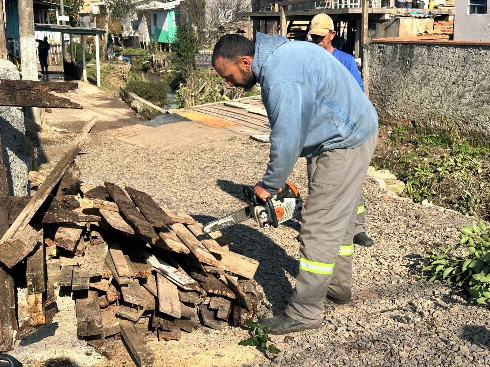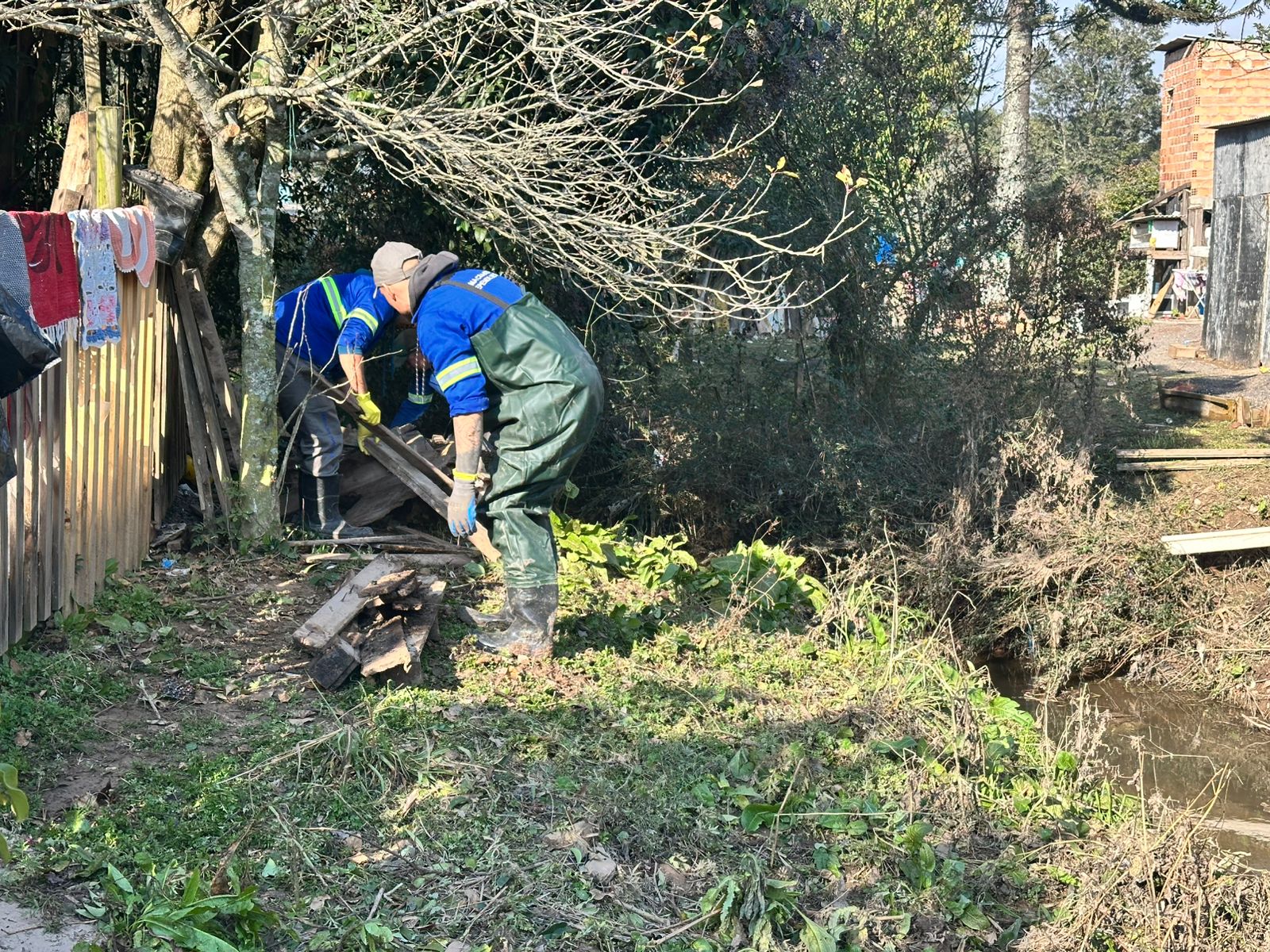 No bairro Passo Fundo, parte das madeiras recolhidas foi aproveitada de forma solidária: Os servidores cortaram os troncos e galhos em pedaços menores e distribuíram como lenha para os moradores da região. A ação aliou cuidado com o meio ambiente à responsabilidade social, promovendo reutilização de materiais que, anteriormente, obstruíam o leito do córrego.
