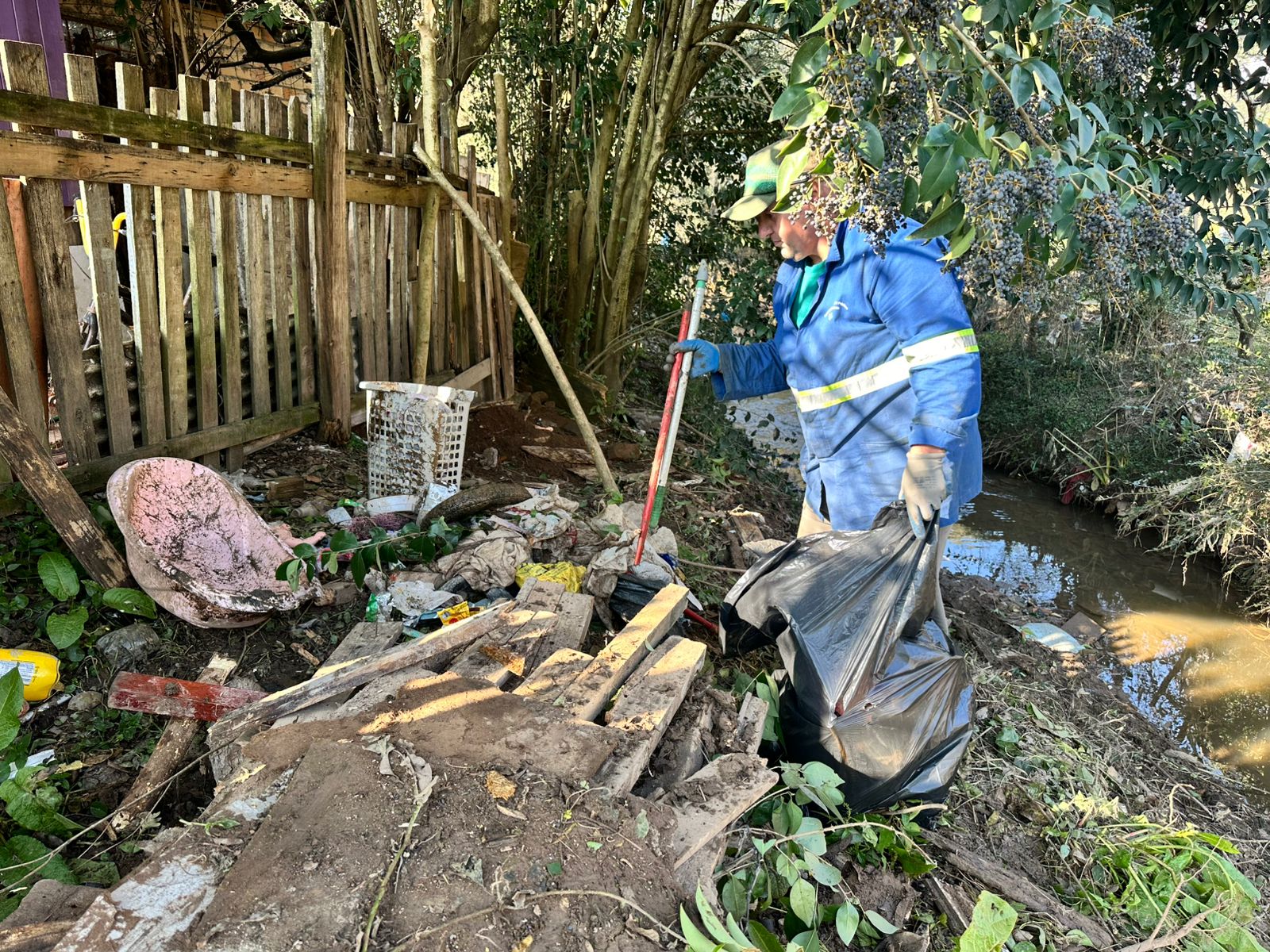 Retirada de resíduos e entulhos em canais de água do bairro Passo Fundo e Parque Natural Municipal contribui para evitar alagamentos e leva conscientização à população