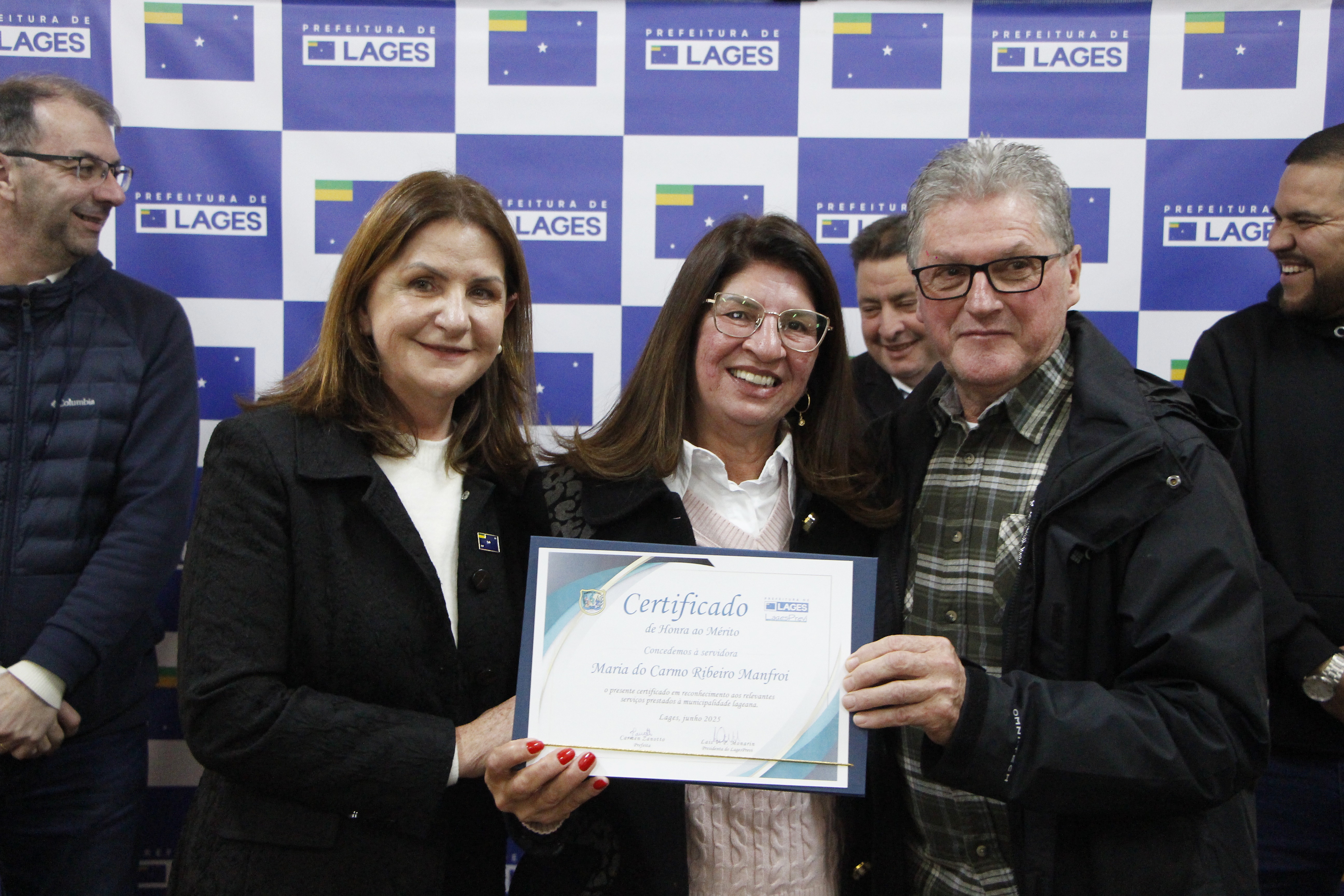 E para homenagear 43 servidores públicos municipais que recentemente encerraram sua trajetória profissional na Prefeitura de Lages [primeiro semestre de 2025], o Município, em parceria mútua com o Instituto de Previdência do Município de Lages (LagesPrevi), entregou ao seleto grupo, em solenidade oficial na tarde desta quinta-feira (10 de julho), o Certificado de Honra ao Mérito como agradecimento, valorização e lembrança pelas mais de duas, três décadas em que não estiveram de passagem pelos seus ambientes de trabalho em secretarias, fundações, autarquias e órgãos, bem pelo contrário, deixaram sua marca a partir de ideias criadas, programas efetivados, projetos começados e concluídos em favor da sua cidade querida.