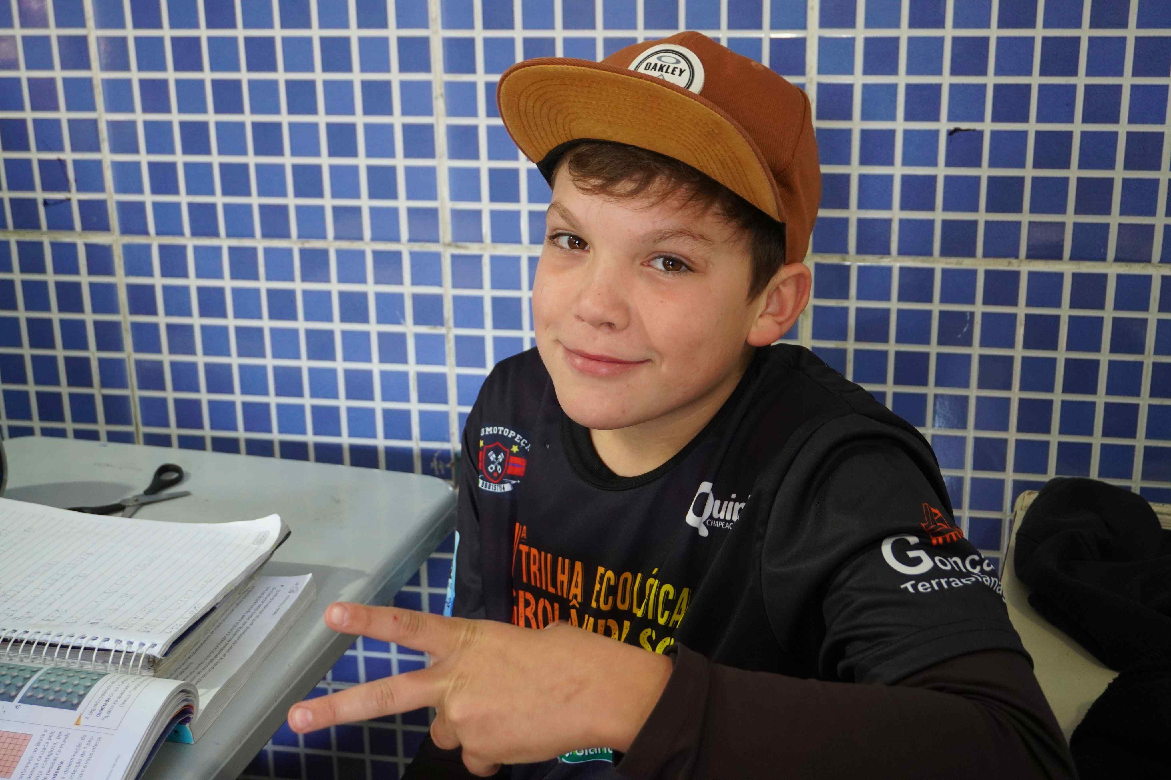 Everton Correa Sales, 12 anos, avalia: “Gosto das aulas, são bem práticas. Também me interesso bastante por matemática. O professor é excelente. Ele está realizando um sonho, então temos que sentir orgulho.”