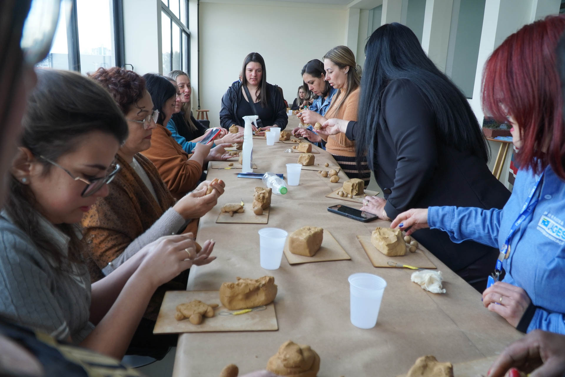 No período da tarde foram realizadas as oficinas pedagógicas envolvendo uma pluralidade temática, desde a cultura africana, danças gaúchas, até Inteligência Artificial (IA). A professora Carla Ribeiro dos Santos, do Centro de Educação Infantil Municipal (Ceim) Adelina Tramontin Sommariva, participou da oficina “Justiça Restaurativa no Âmbito da Educação” e aprovou a iniciativa. “As oficinas estão bem organizadas, com uma estrutura muito boa e essa em especial apresentou um tema bem pertinente e importante para o âmbito escolar”, relatou Carla.