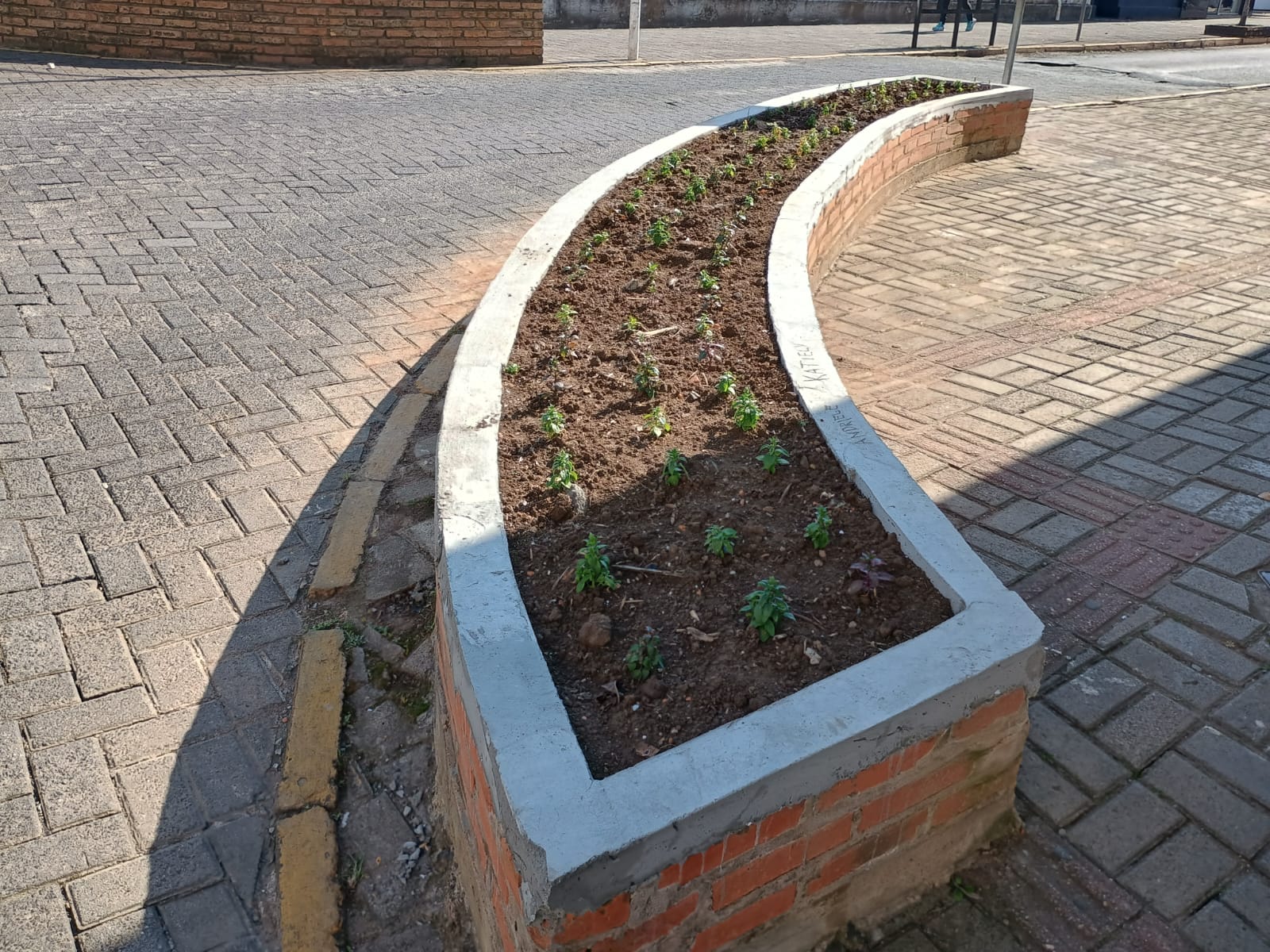 Nos últimos dias, as ações contemplaram a revitalização dos canteiros da rua Emiliano Ramos, conhecida como Via Gastronômica. Os canteiros de tijolos receberam reparos estruturais e, em seguida, novas espécies de flores foram plantadas, promovendo um visual mais agradável e convidativo ao local.