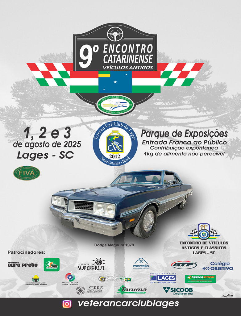 Consolidado no calendário de eventos da Lages, neste ano, o encontro acontece durante os dias 1º, 2 e 3 de agosto no Parque de Exposições Conta Dinheiro e pretende reunir cerca de 500 veículos e mais de 10 mil visitantes e apreciadores do antigomobilismo. O lançamento no Mercado Púbico será apenas um gostinho do que será evento no primeiro fim de semana de agosto.