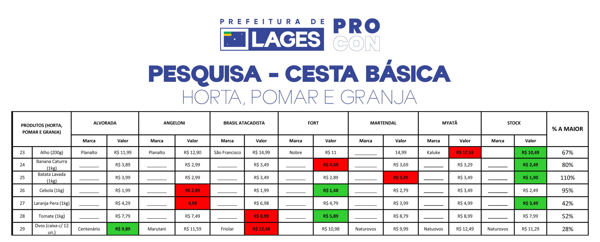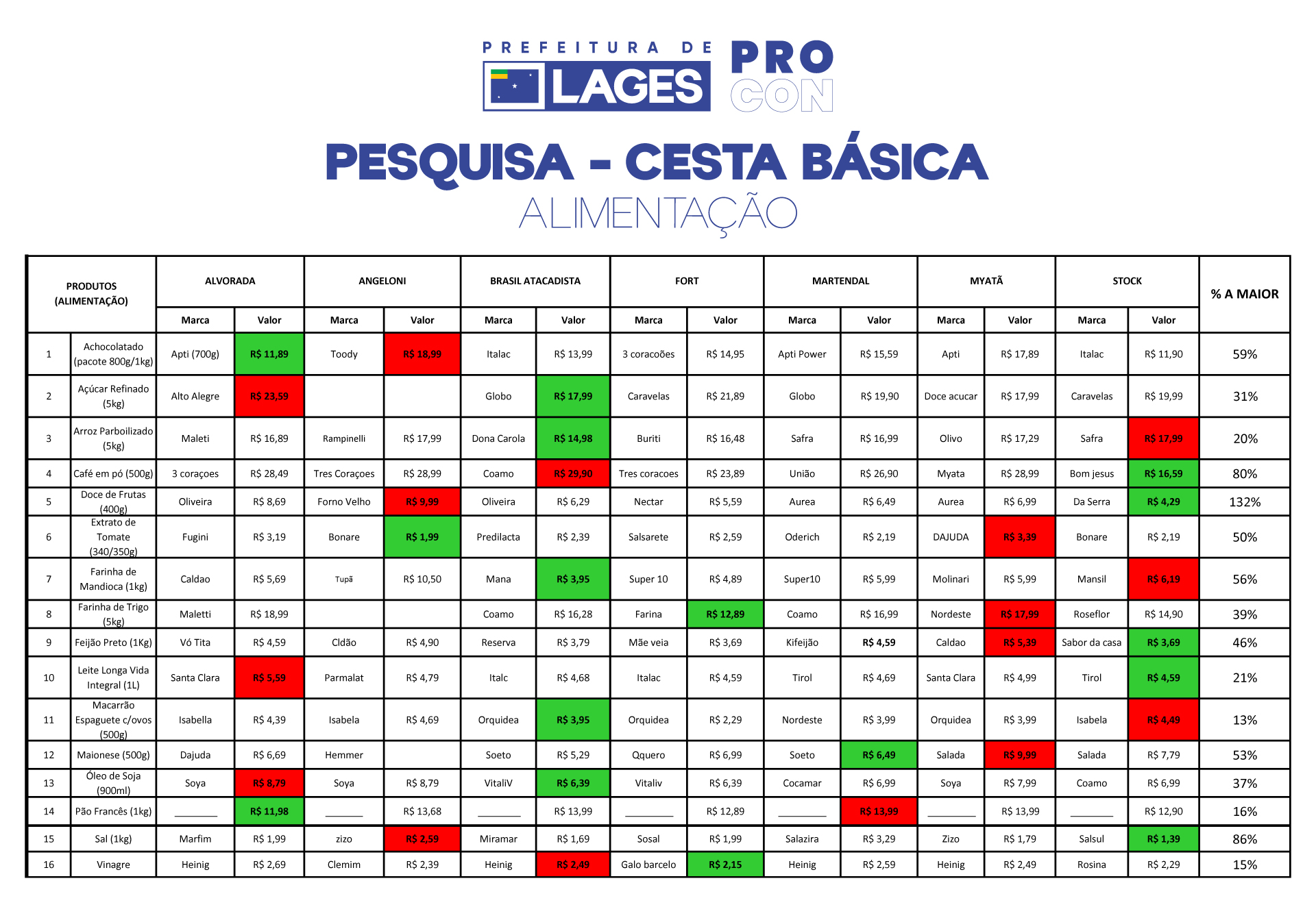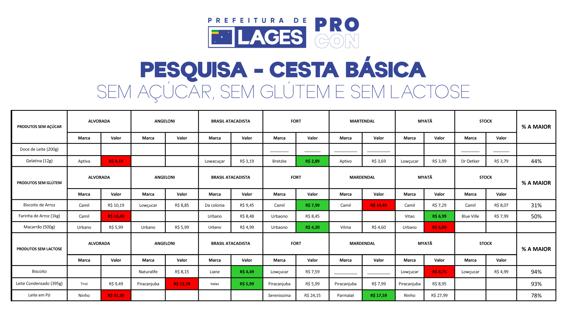 O Programa de Defesa do Consumidor de Lages (Procon) dá prosseguimento às pesquisas mensais de produtos da cestas básica, que foram retomadas no início deste ano. A pesquisa realizada no mês de agosto aponta variações significativas nos preços dos produtos.