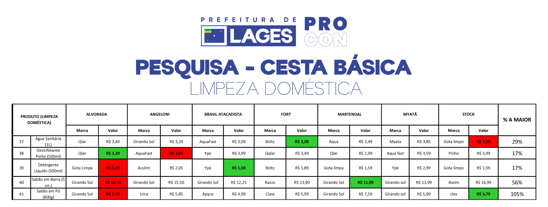 A pesquisa foi realizada em sete supermercados da cidade: Alvorada; Angeloni; Brasil Atacadista; Fort; Martendal; Myatã e Stock Center