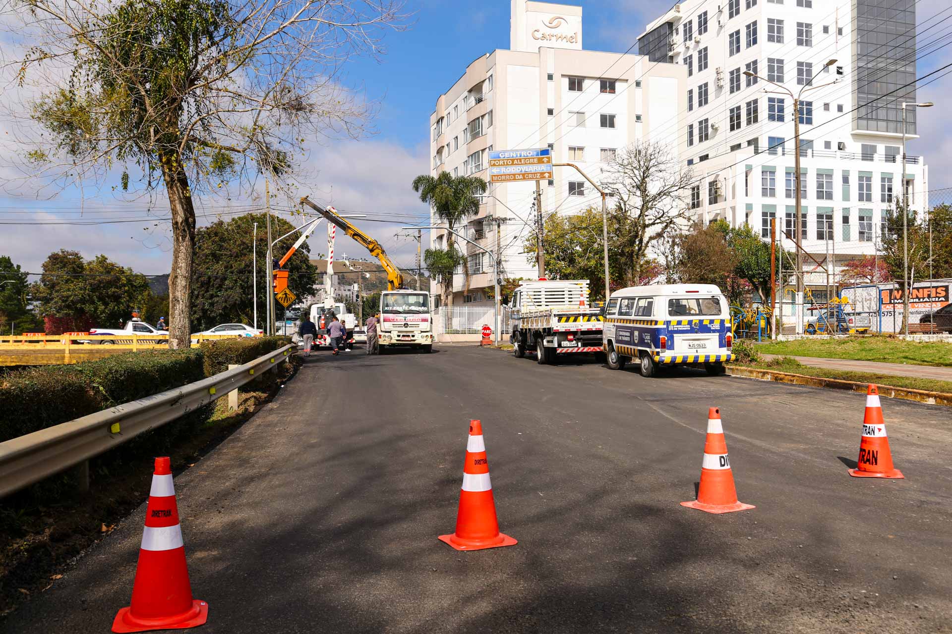 Nesta terça-feira (12 de agosto), a Prefeitura de Lages, por intermédio da Secretaria do Planejamento Urbano (Seplam), iniciou a instalação do equipamento de semáforo inteligente ou adaptativo na esquina da rua Frei Gabriel com a avenida Belisário Ramos (Carahá). O aparelho identifica a presença de veículos e ajusta o tempo de abertura e fechamento conforme o fluxo em tempo real. A medida visa desafogar o trânsito nos horários de pico, principalmente durante o início e saída de alunos nas escolas e final do expediente de trabalho nas empresas e instituições públicas, quando o fluxo de veículos na região fica bastante intenso.