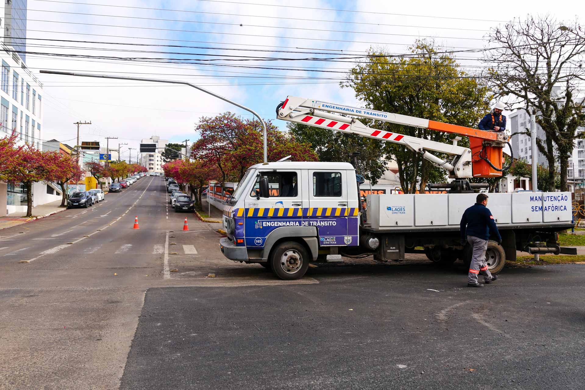 Prefeitura de Lages inicia instalação do semáforo inteligente na esquina da rua Frei Gabriel com a avenida Belisário Ramos