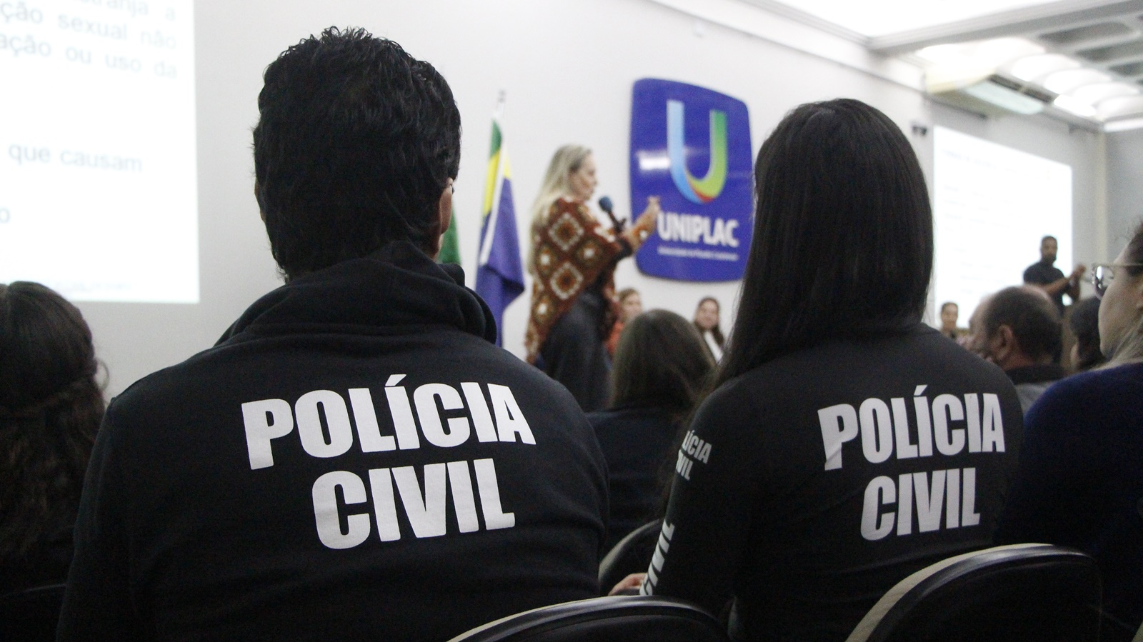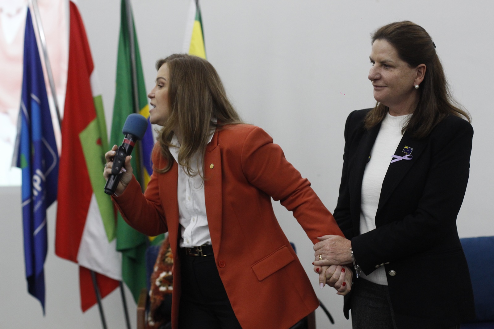 Logo após, seguiram-se as palestras da noite. A Secretária de Estado da Mulher, Igualdade Racial e Pessoa Idosa do Paraná e deputada federal, Leandre Dal Ponte falou sobre a expansão das ações governamentais no estado vizinho. E acerca da importância dos eventos nacionais e até mesmo internacionais, como na Organização das Nações Unidas (ONU), para o fortalecimento das entidades representativas e sociais.