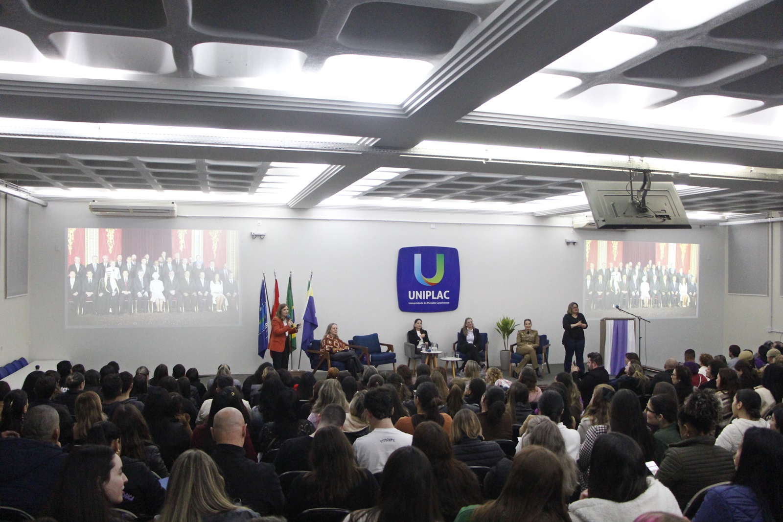 A noite desta segunda-feira (18 de agosto) foi mais uma data marcante entre tantas ações do Agosto Lilás em Lages. O mês, voltado ao combate à violência contra a mulher, vem reunindo diversas atividades junto à população e, ontem, não foi diferente. O auditório da Universidade do Planalto Catarinense (Uniplac) ficou lotado por uma nobre causa: ouvir lideranças femininas, discutir políticas públicas, compartilhar experiências de vida e, mais do que isso, almejar um futuro onde as mulheres não sofram qualquer tipo de violência.