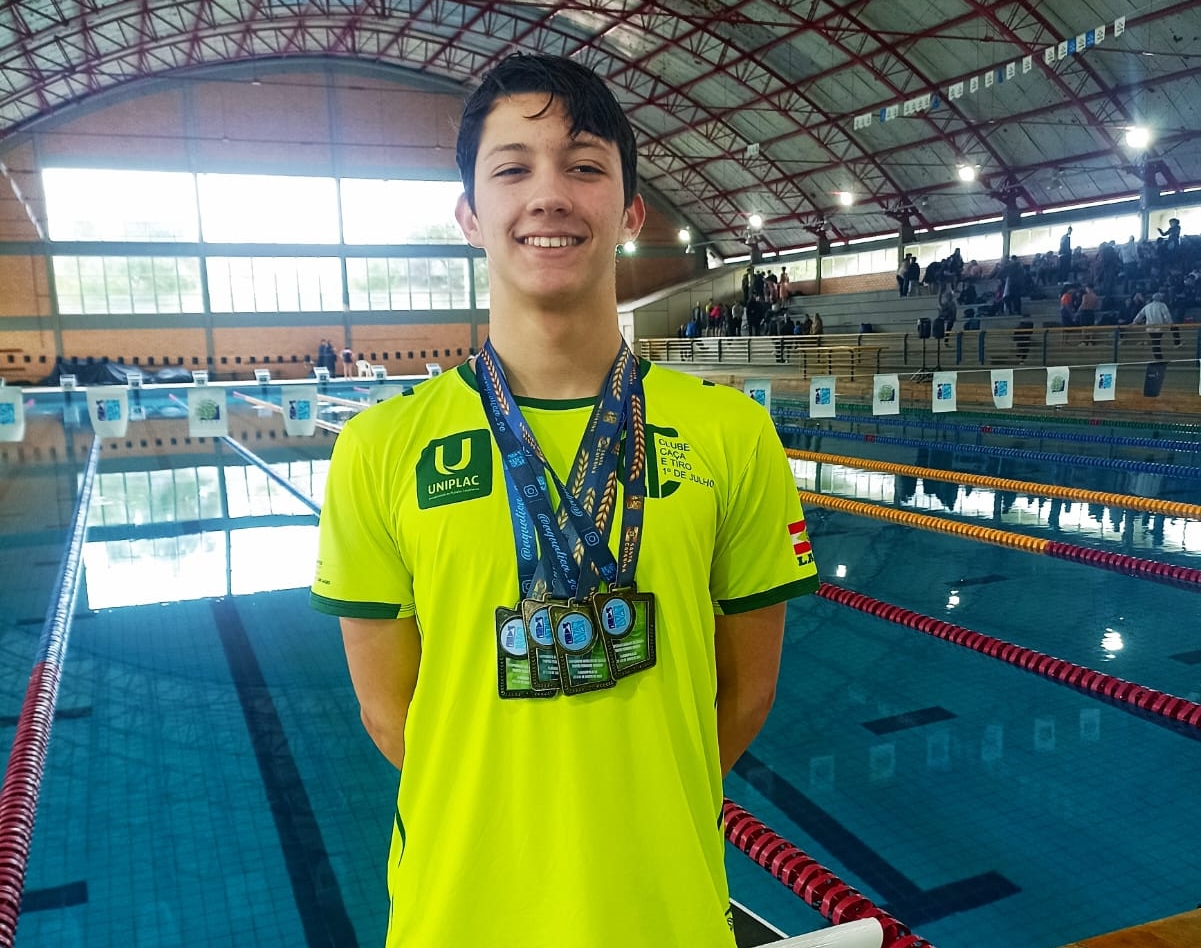 Entre os dias 22 e 24 de agosto, a piscina longa (50m) da Universidade Federal de Santa Catarina (UFSC), em Florianópolis, foi palco do Estadual Absoluto de Natação – 2º semestre, Troféu Fernando Scherer 2025, que reuniu mais de 250 atletas, maiores de 13 anos, representando 18 clubes. A equipe Caça e Tiro 1º de Julho/Asena/Uniplac/FME esteve presente mostrando a força da natação lageana. O grande destaque foi Gabriel Oliveira Nerbass, que subiu ao pódio em quatro provas, conquistando três medalhas de ouro e uma de prata.
