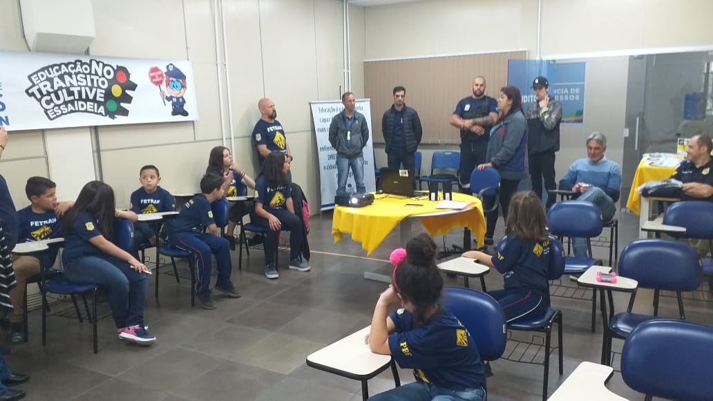 Nesta terça feira (26 de novembro), na sala de cursos da Diretran, os alunos da EMEB Fausta Rath, apresentaram a devolutiva dos cinco meses de estudos e práticas. O projeto foi coordenado pelo professor José Bossle. Segundo o professor, durante este período, as turmas foram estimuladas a desenvolver análise crítica do trânsito no seu bairro e na cidade. “Nós incentivamos a leitura não verbal do trânsito nos percursos de deslocamentos dos nossos alunos, no entorno da escola, de suas casas e o comportamento dos motoristas, motociclistas, pedestres e as sinalizações, com o objetivo de humanizar o nosso trânsito” comentou o professor.