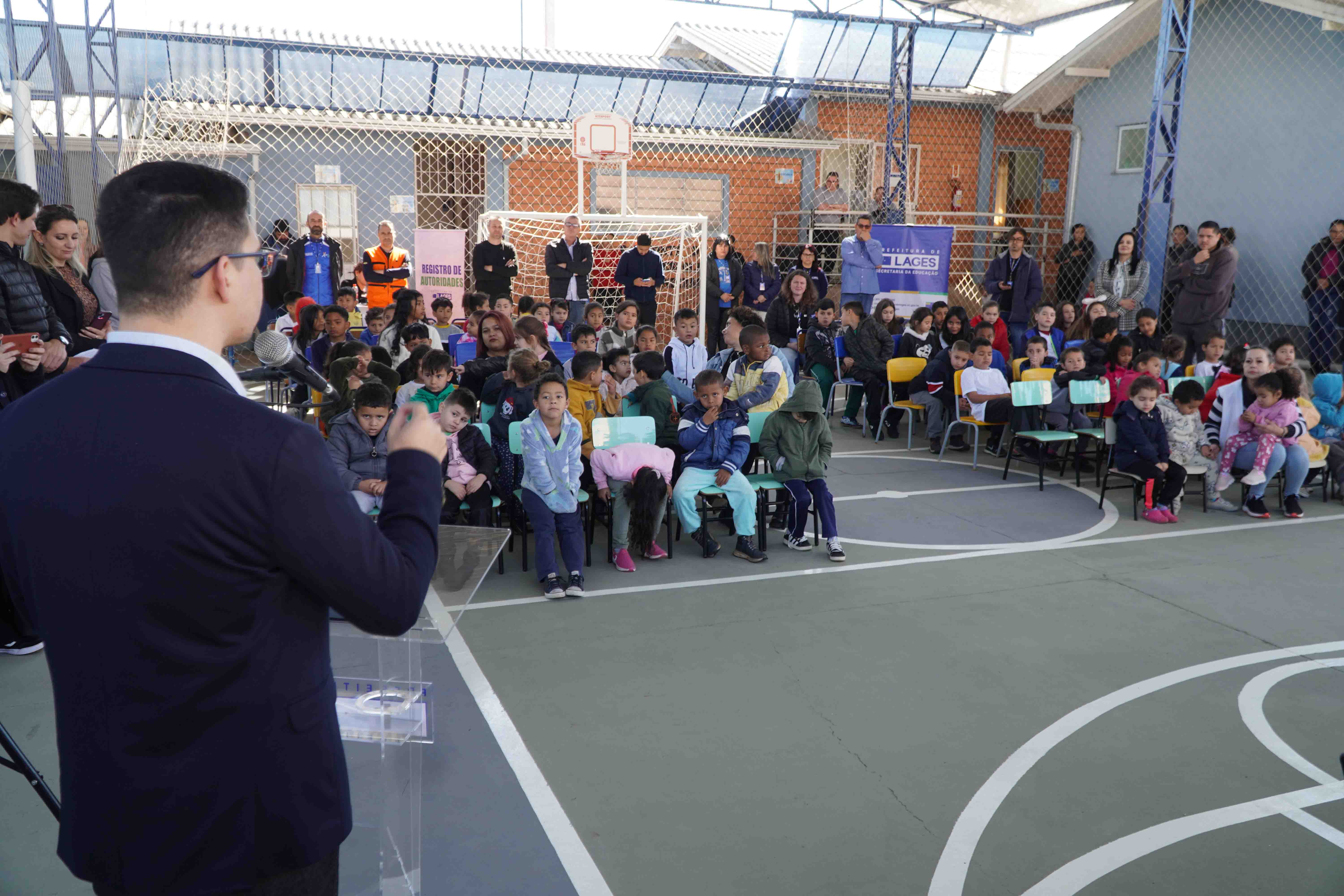 De acordo com o secretário municipal da Educação, professor Dr. Cristian de Oliveira, a entrega de novas obras no Sistema Municipal de Educação não ficará restrita à quadra da Emeb Saul de Athayde. “Quando começamos o governo, a prefeita Carmen Zanotto nos deu uma responsabilidade. Deveríamos fazer um mapeamento de todas as obras com recursos parados na conta da Prefeitura. Esta obra da quadra da Emeb Saul de Athayde é uma das tantas que começamos e hoje estamos entregando. Nas próximas semanas entregaremos as obras do Ceim São Paulo, da quadra coberta do Ceim Bom Jesus e assinaremos ordens de serviço de outros espaços”, enumera o secretário Cristian.