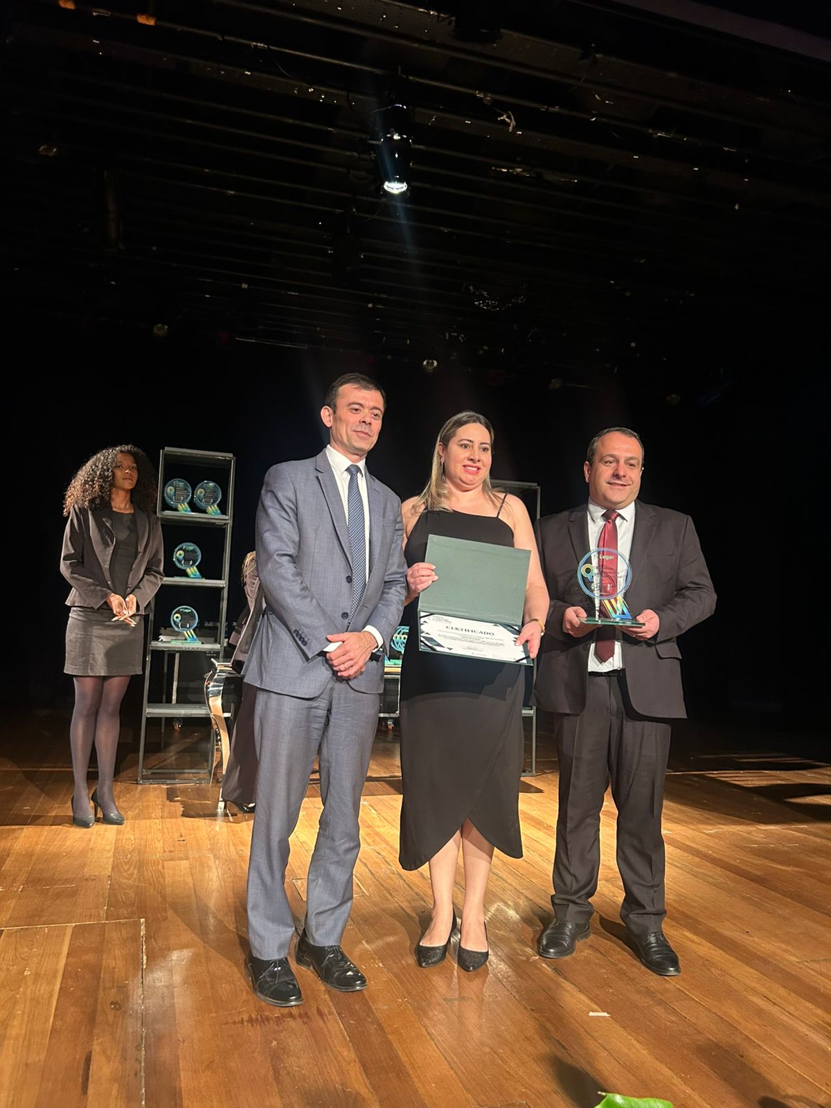 Na cerimônia de entrega estiveram presentes o secretário municipal da Fazenda, Evandro Frigo Pereira; diretora de Contabilidade do Município, Lunara Neto Souza, e as contadoras Karien da Silva e Danieli Scolaro.