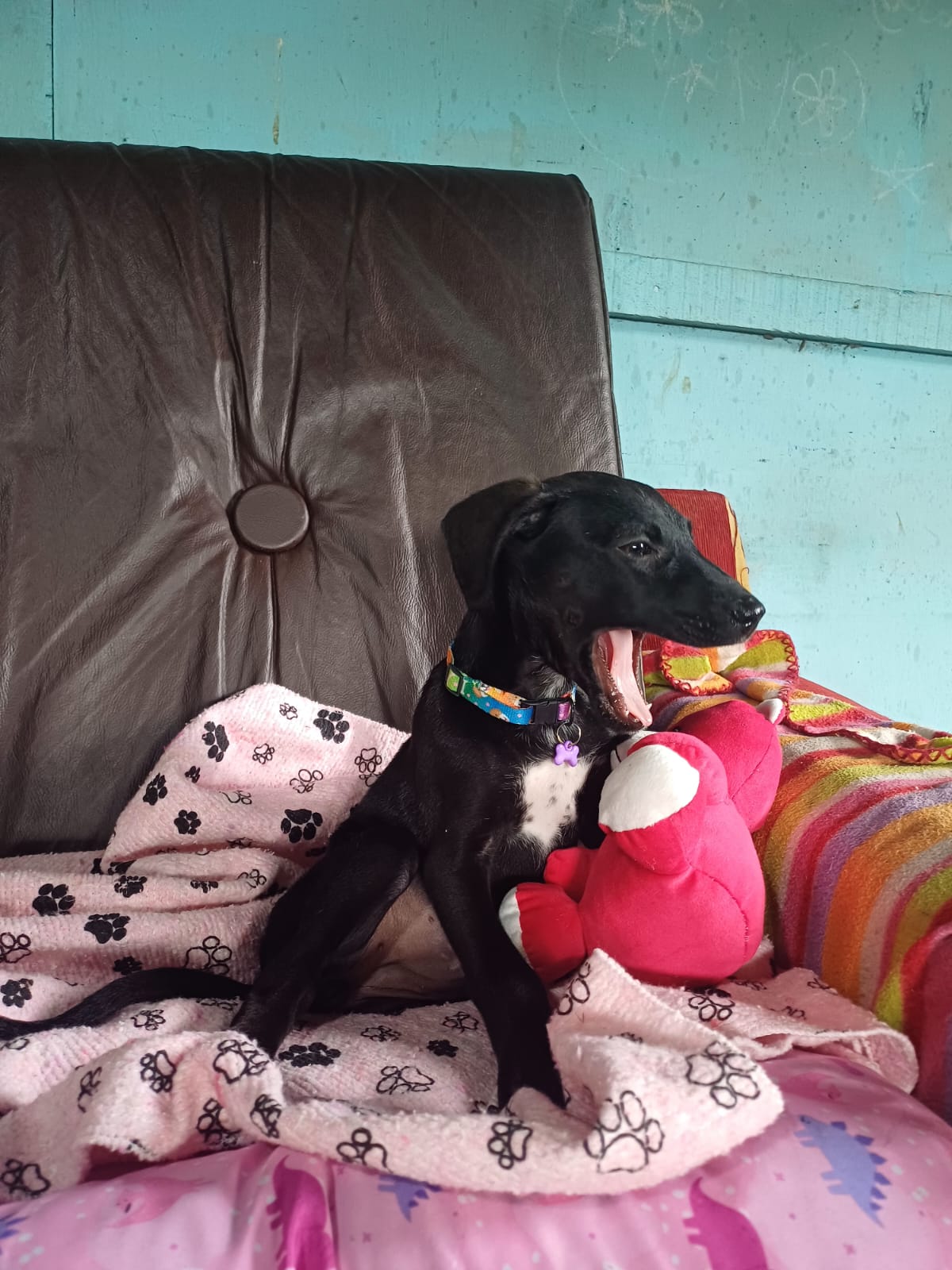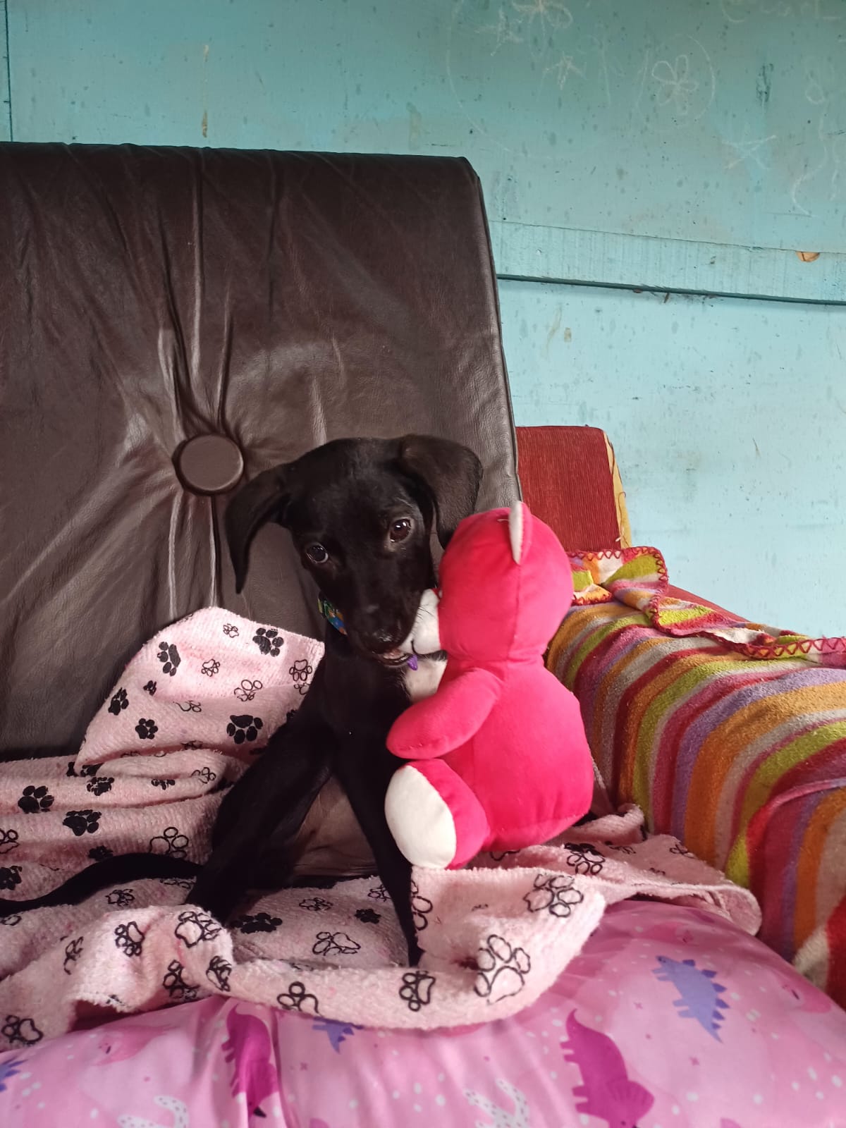 “Bom, estou com ela há apenas a dois dias. No sábado e domingo {20 e 21 de setembro} fomos para o sítio. Ela pôde caminhar, brincamos com bolinha, mas ela adora um colo e dormir comigo.”