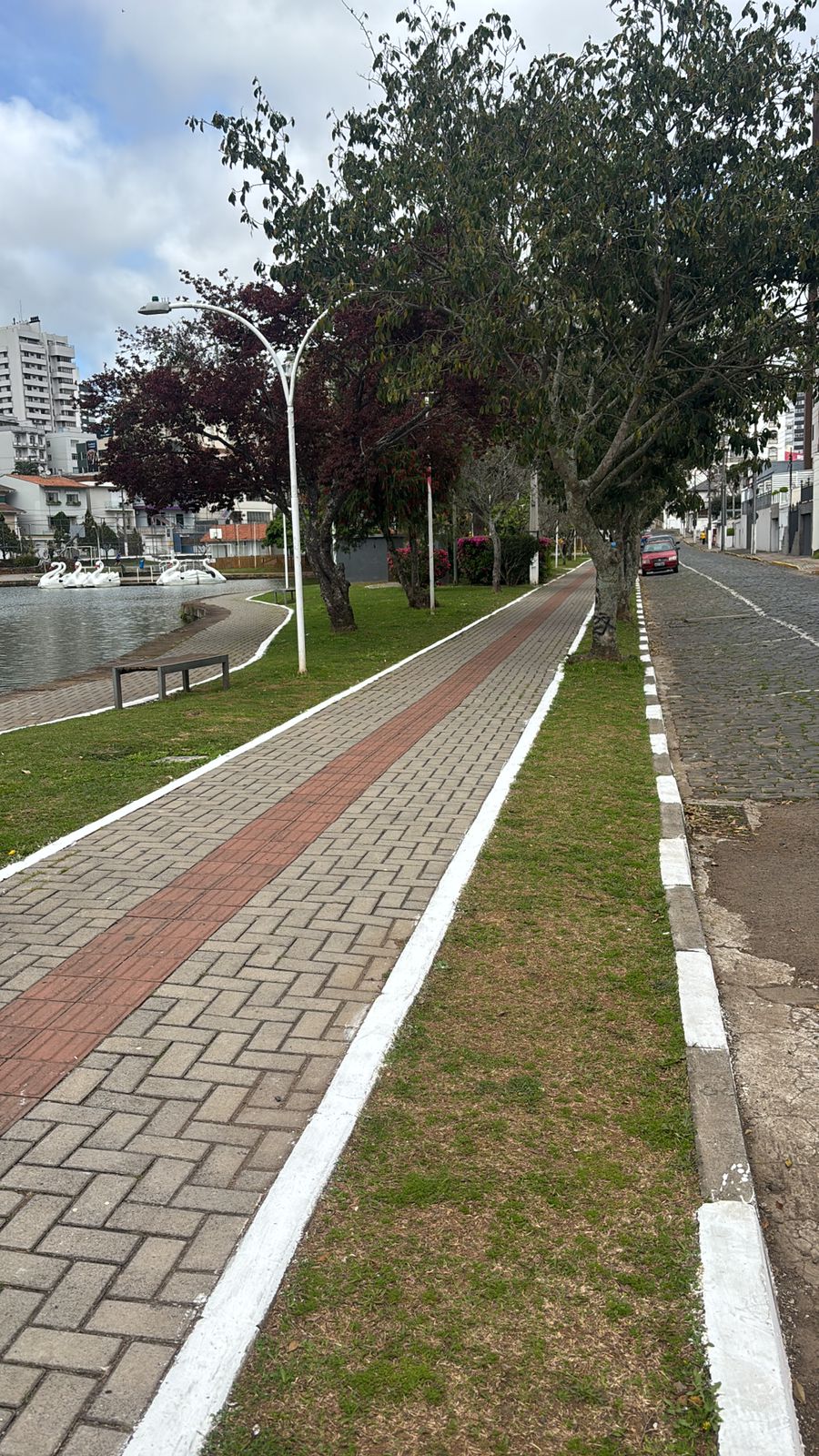 No bairro Guarujá, equipes executam a pintura dos meios-fios ao longo da ciclovia da avenida 31 de Março. Em outros pontos da cidade, são realizados serviços de roçada, reforçando o cuidado com a limpeza e o paisagismo urbano.